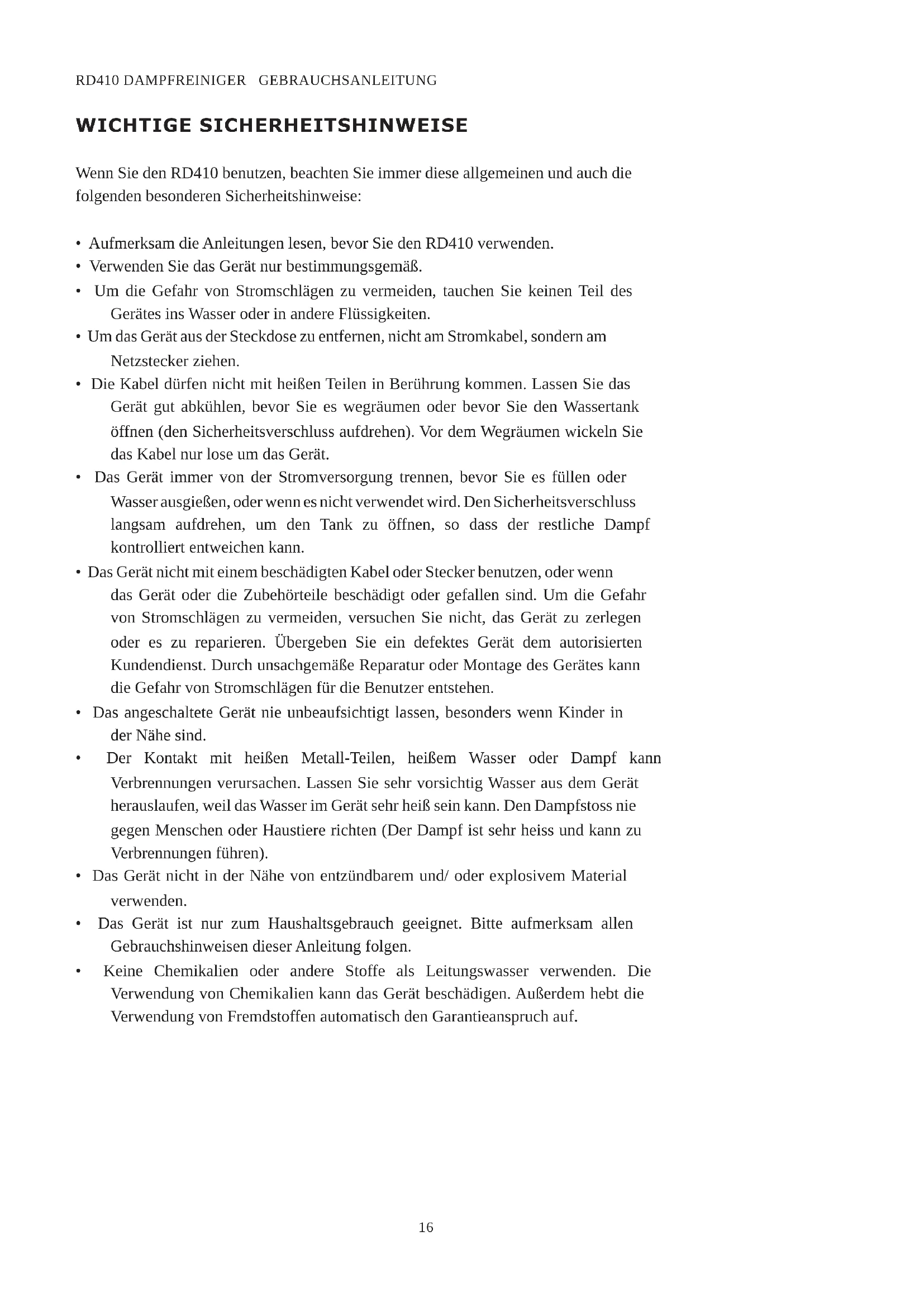 RD410 DAMPFREINIGER GEBRAUCHSANLEITUNG