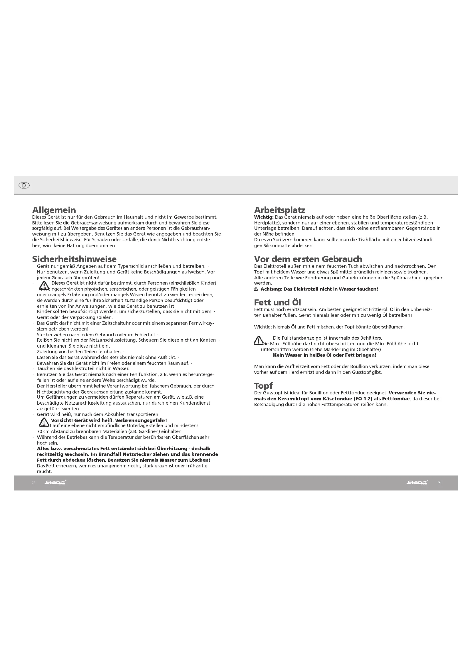 FO 1.1 - Fondue-, Raclette- und Wokgerät STEBA - Kostenlose Bedienungsanleitung