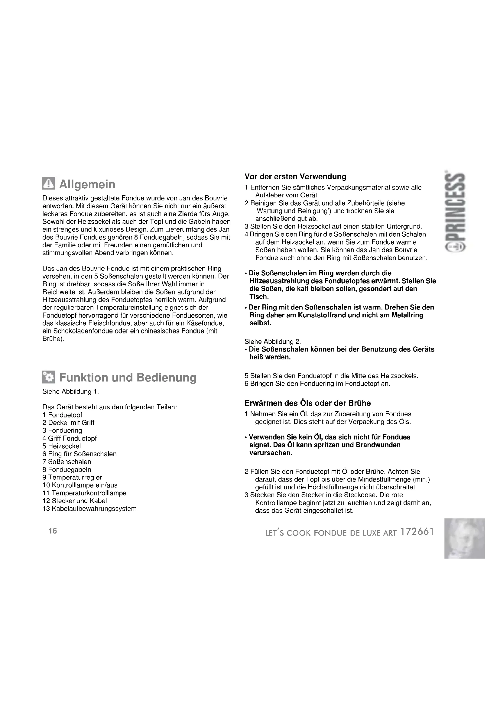 BEDIENUNGSANLEITUNG Lets Cook Deluxe 172661 PRINCESS