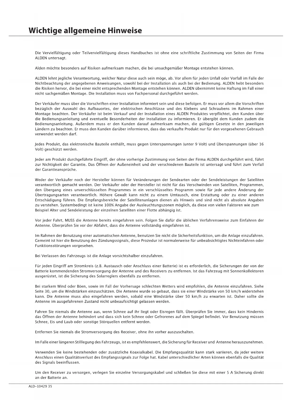 35 Wichtige allgemeine Hinweise