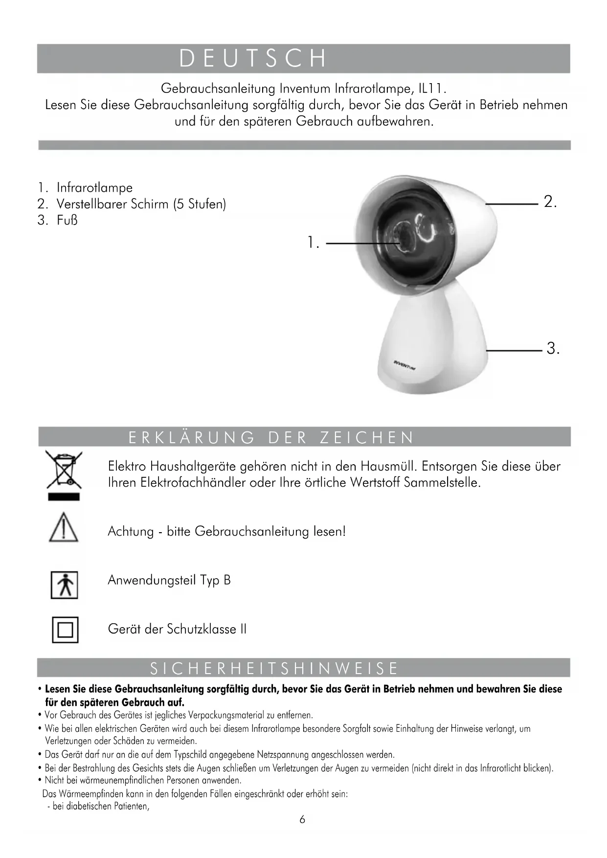 Gebrauchsanleitung Inventum Infrarotlampe, IL11.