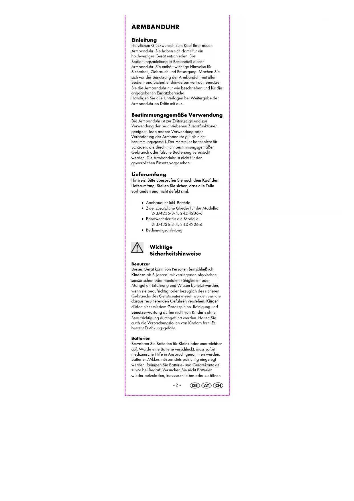 ARMBANDUHR Bedienungs- und Sicherheitshinweise