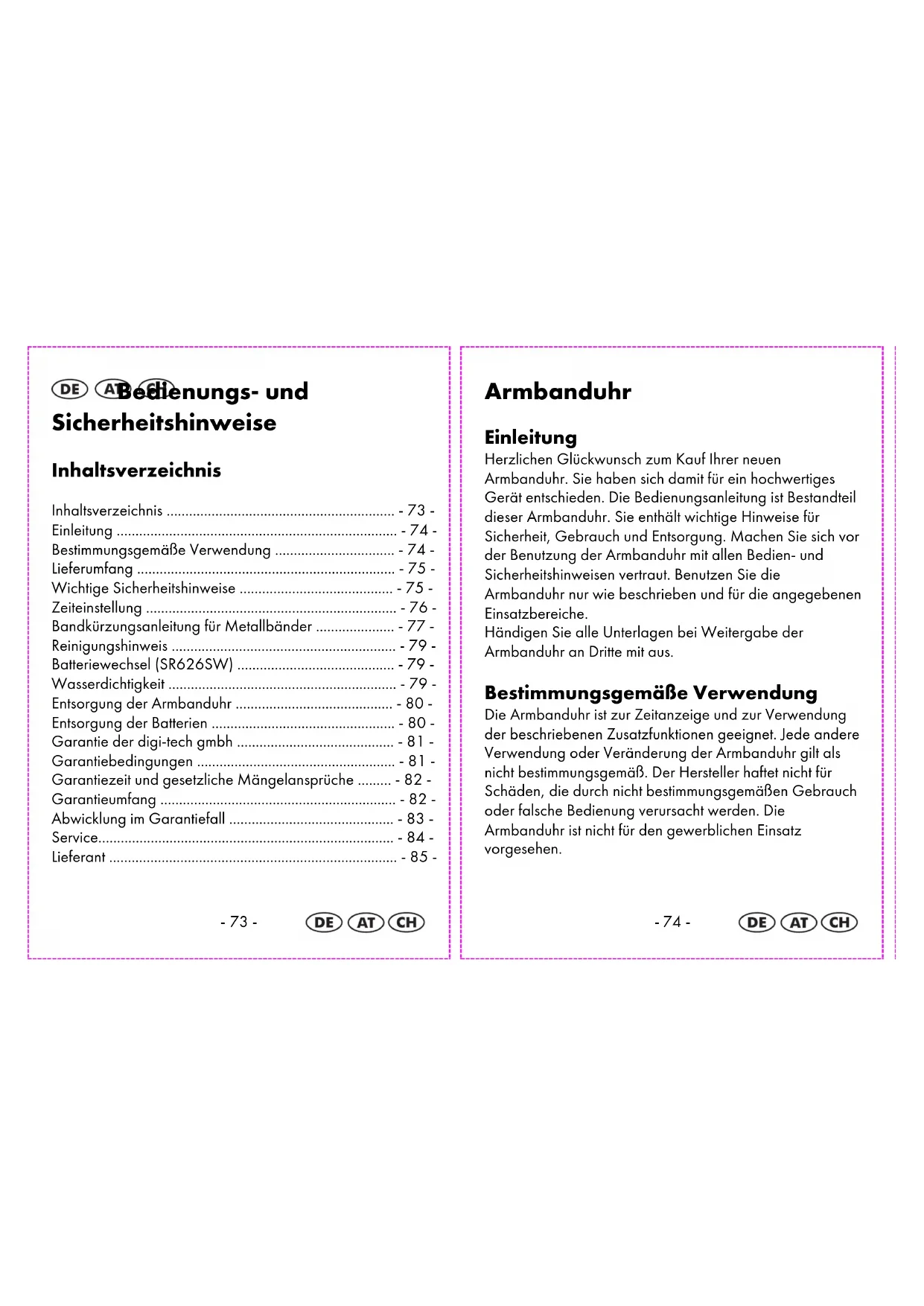 Armbanduhr Bedienungs- und Sicherheitshinweise