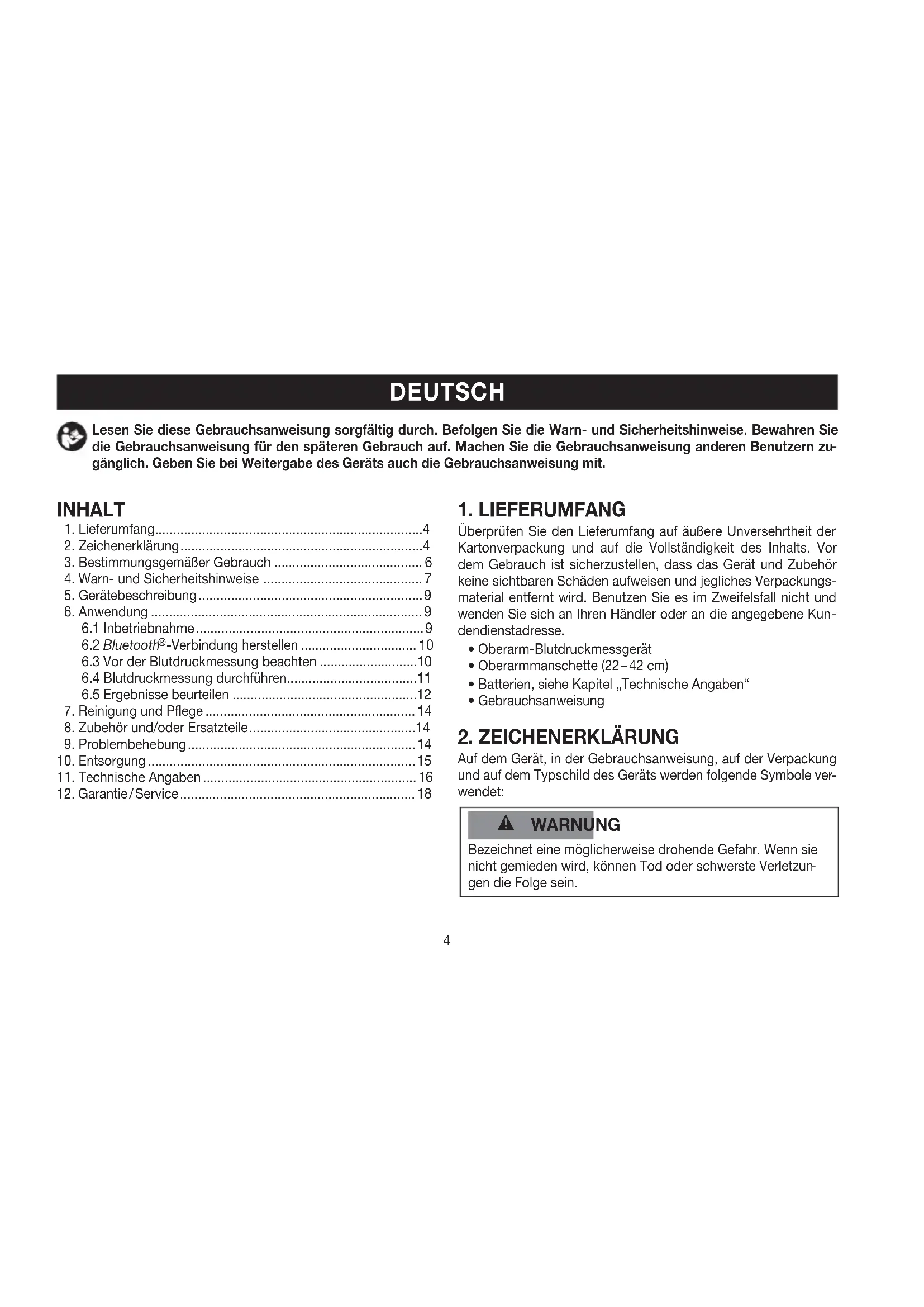 gen die Folge sein. DEUTSCH Lesen Sie diese Gebrauchsanweisung sorgfältig durch. Befolgen Sie die Warn- und Sicherheitshinweise. Bewahren Sie die Gebrauchsanweisung für den späteren Gebrauch auf. Machen Sie die Gebrauchsanweisung anderen Benutzern zu