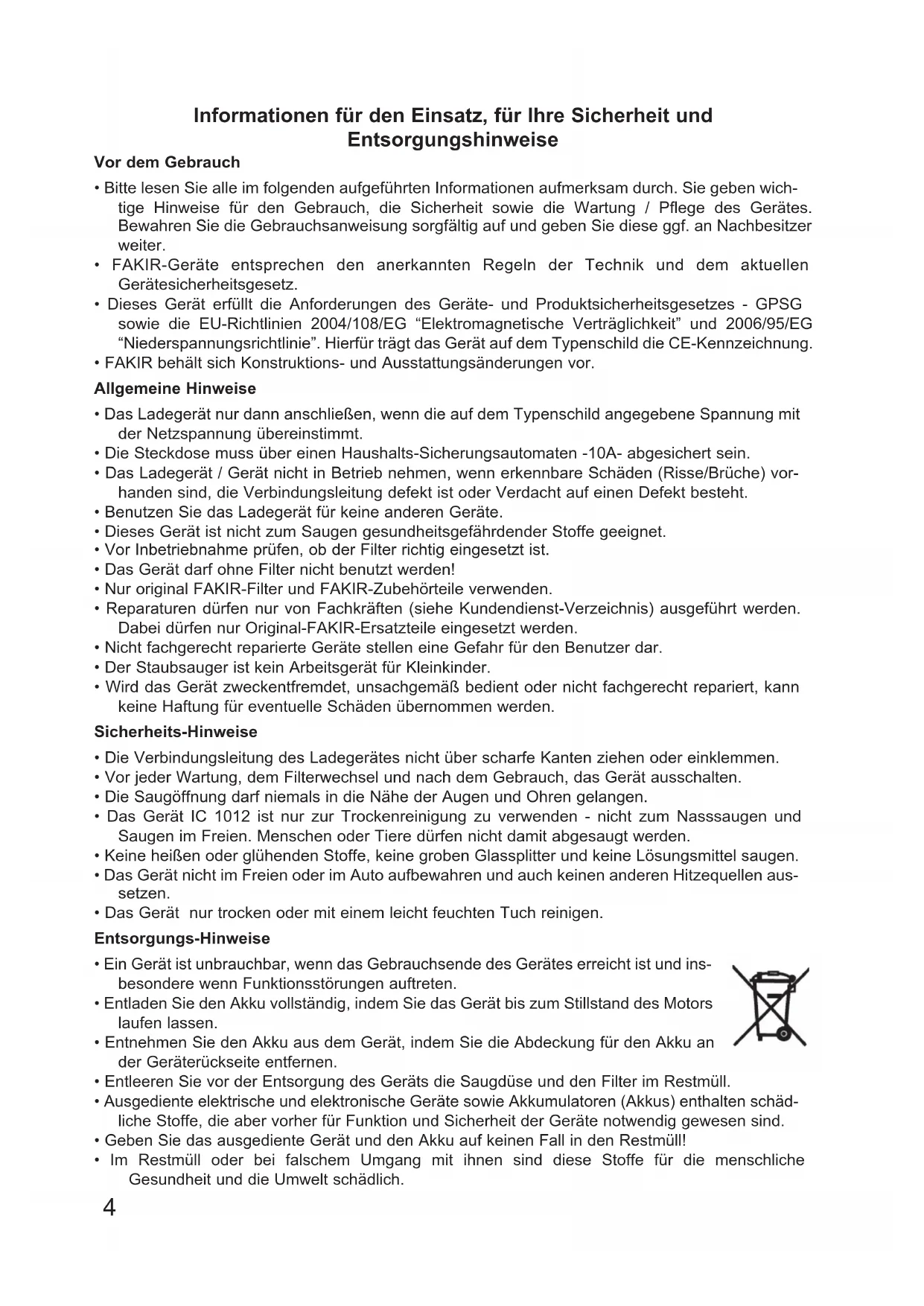 Finden Sie kostenlos die Bedienungsanleitung des Geräts IC 2012 FAKIR als PDF.