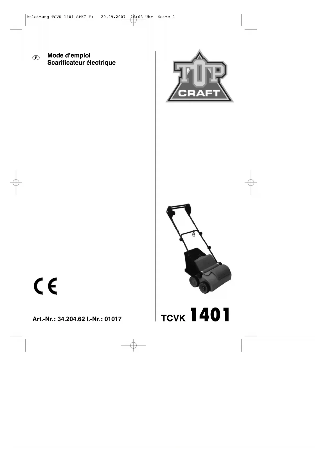 BEDIENUNGSANLEITUNG TCVK 1401 Topcraft