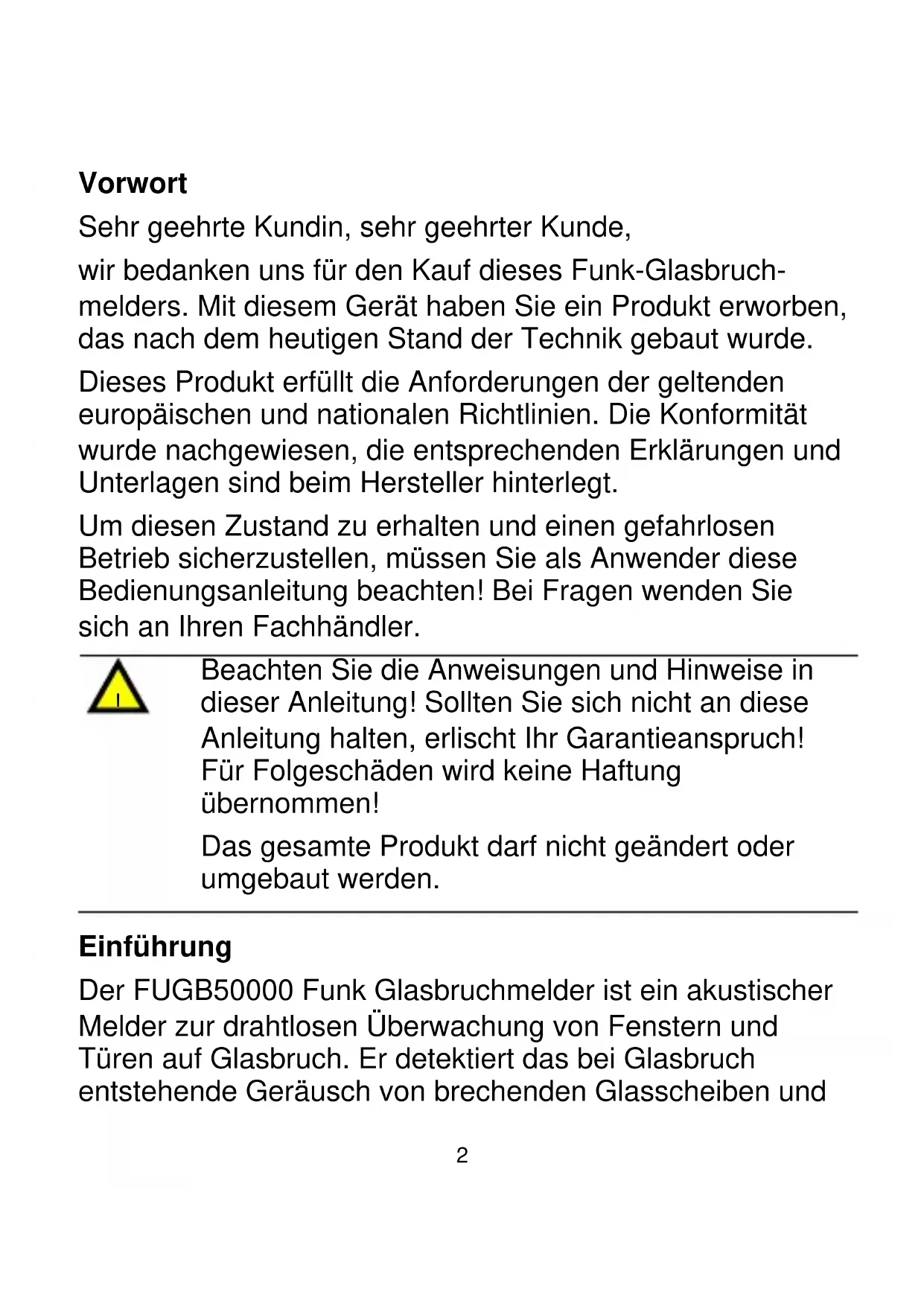 wir bedanken uns für den Kauf dieses Funk-Glasbruchmelders. Mit diesem Gerät haben Sie ein Produkt erworben, das nach dem heutigen Stand der Technik gebaut wurde.