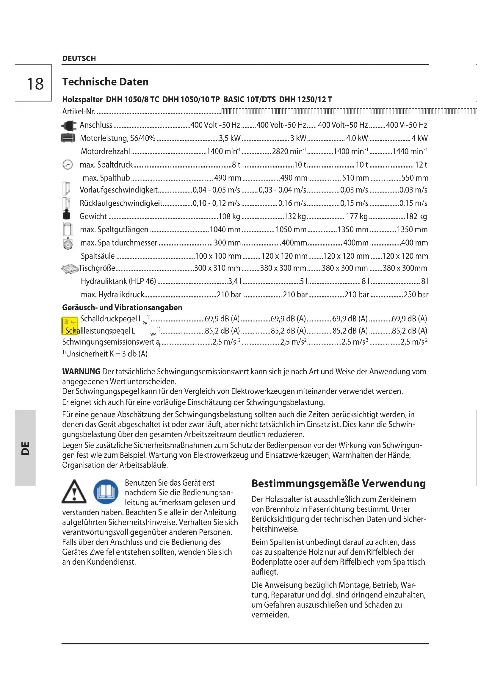 DHH 105010 TP - Holzspalter Güde - Kostenlose Bedienungsanleitung