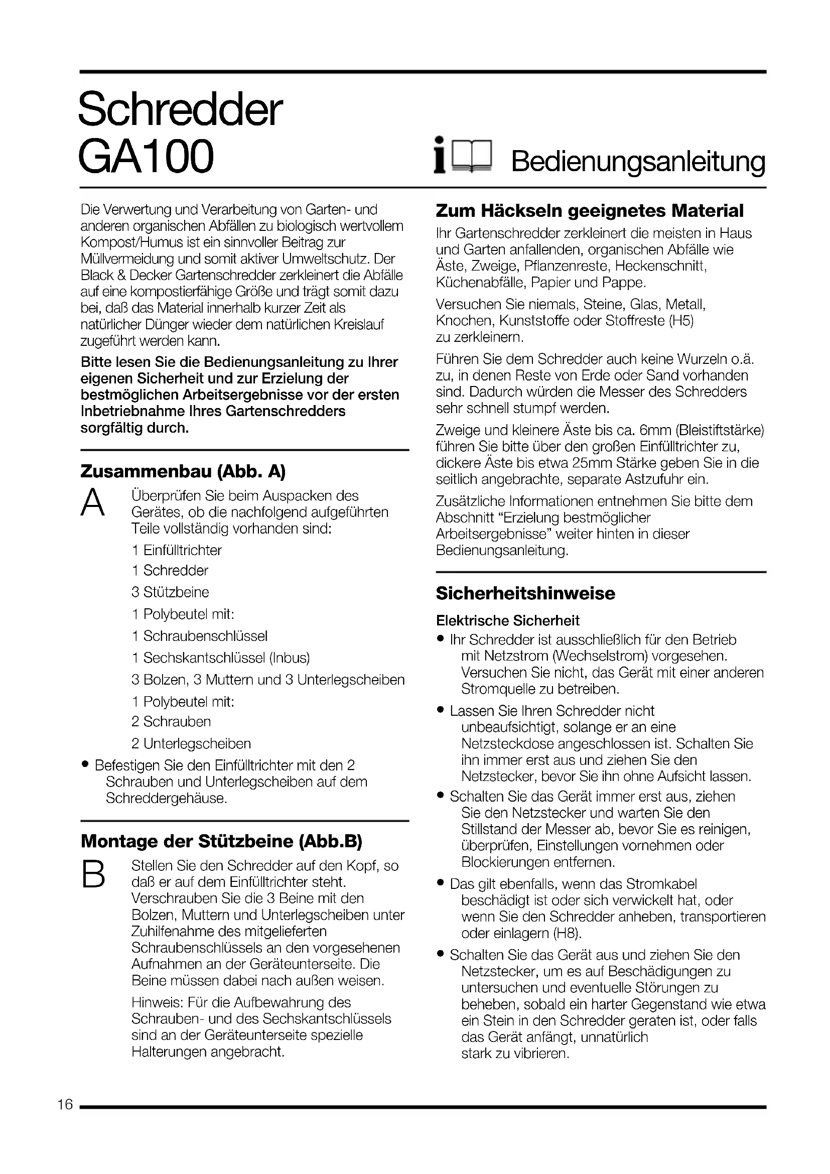 GA100 - Mechanischer Häcksler BLACK & DECKER - Kostenlose Bedienungsanleitung
