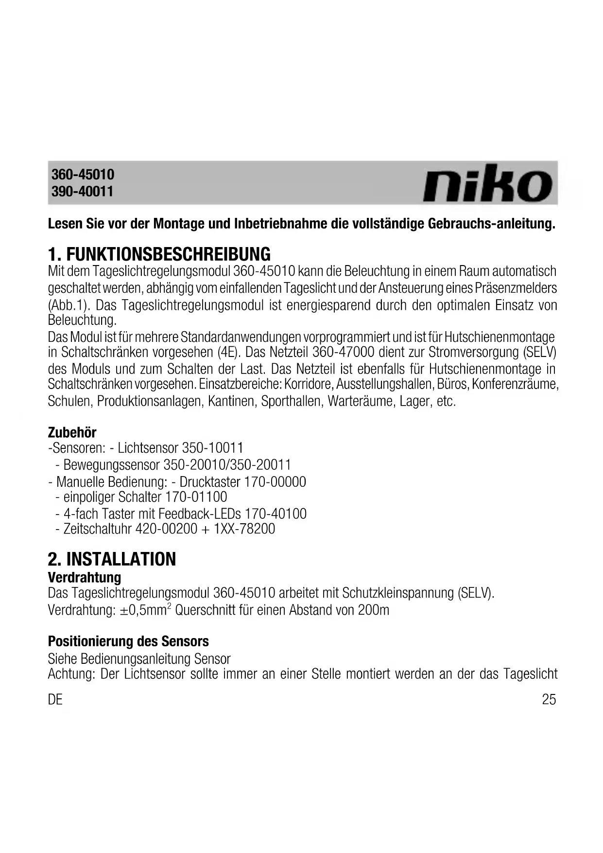 BEDIENUNGSANLEITUNG 36045010 Niko
