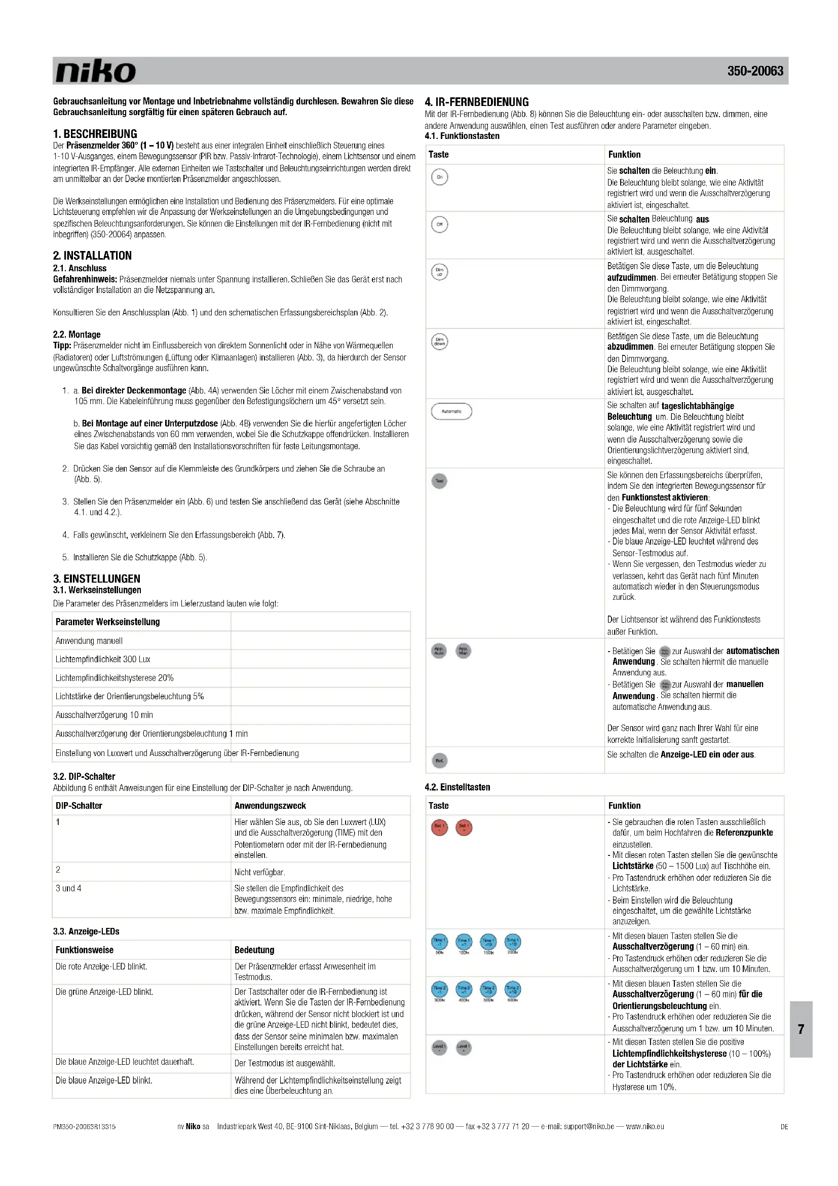 35020063 - Smart Home Niko - Kostenlose Bedienungsanleitung