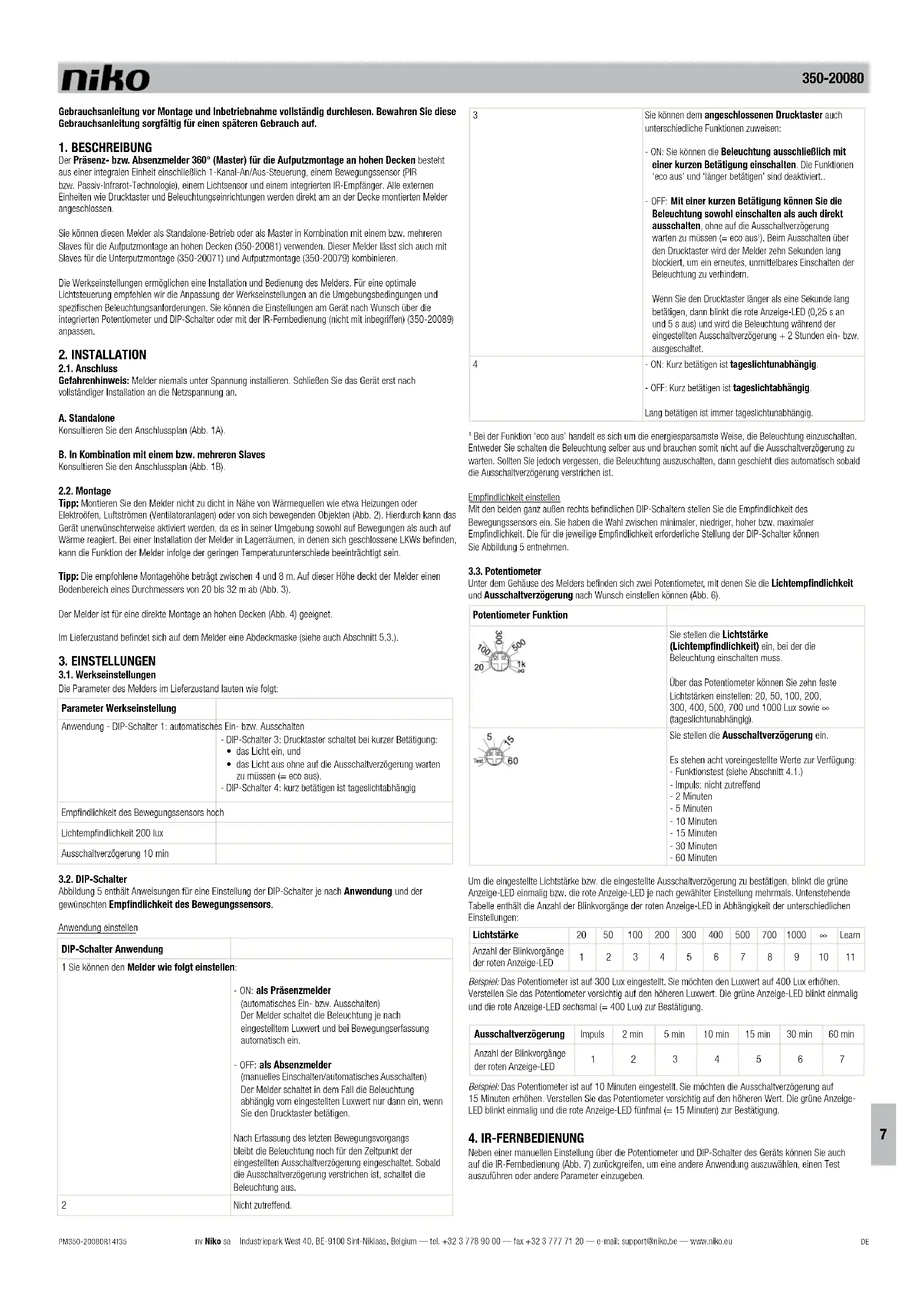 BEDIENUNGSANLEITUNG 35020080 Niko