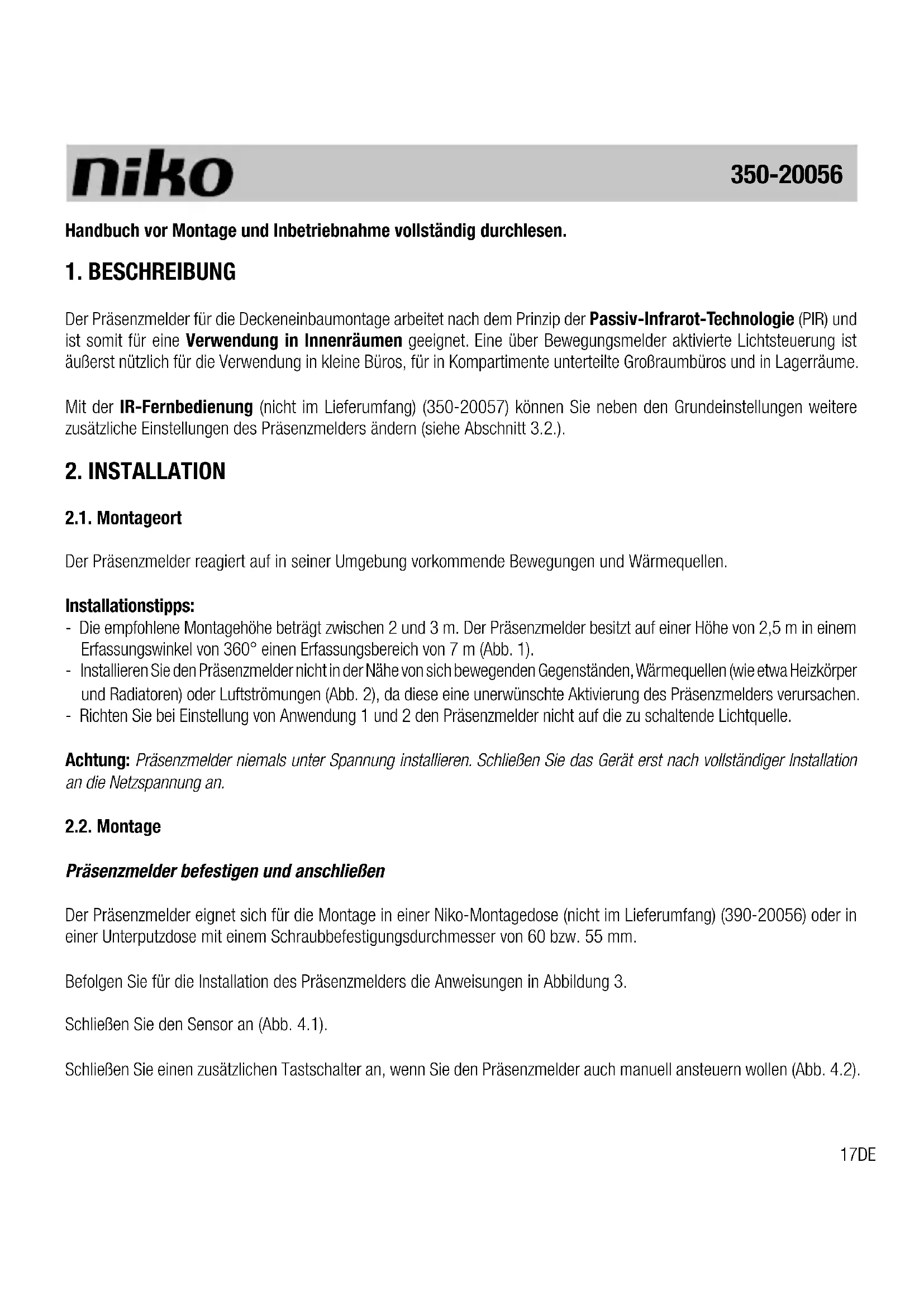 BEDIENUNGSANLEITUNG 35020056 Niko