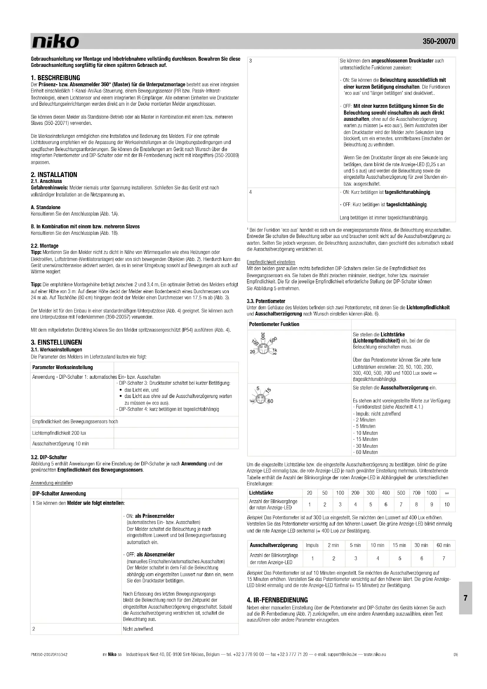 Finden Sie kostenlos die Bedienungsanleitung des Geräts 35020070 Niko als PDF.