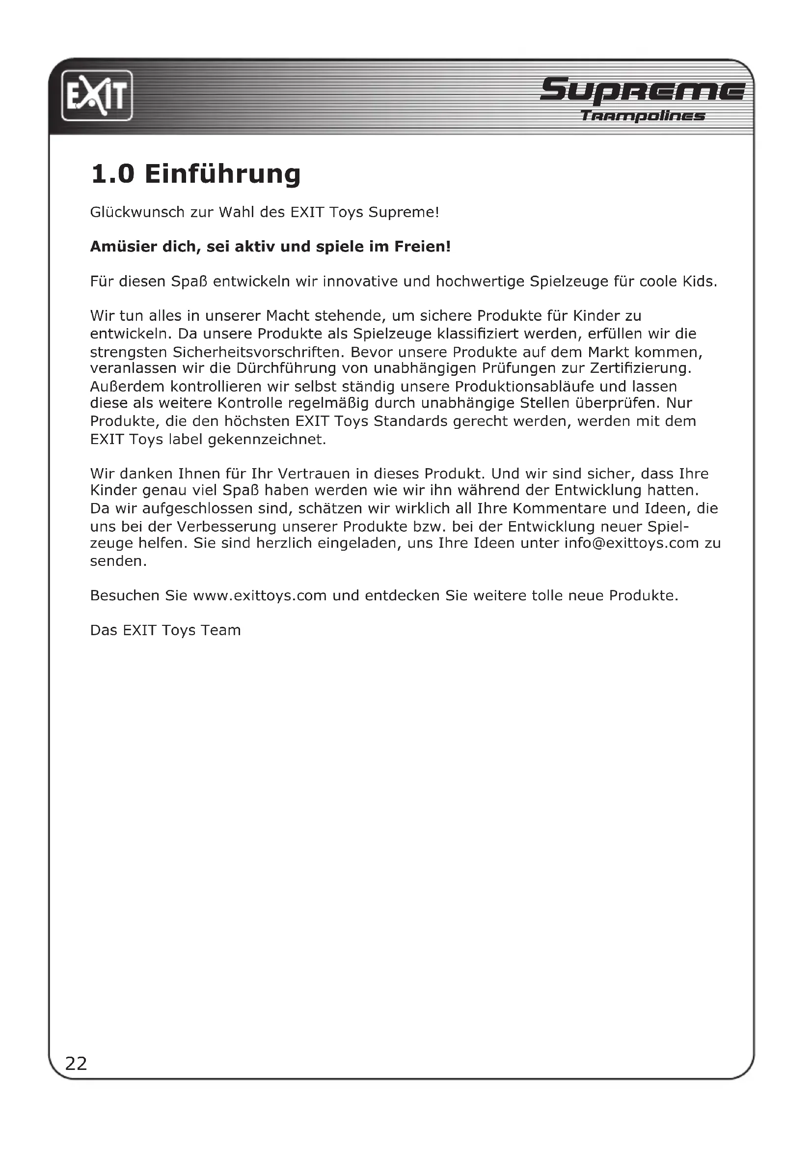 Supreme Ground Level - Trampolin EXIT - Kostenlose Bedienungsanleitung