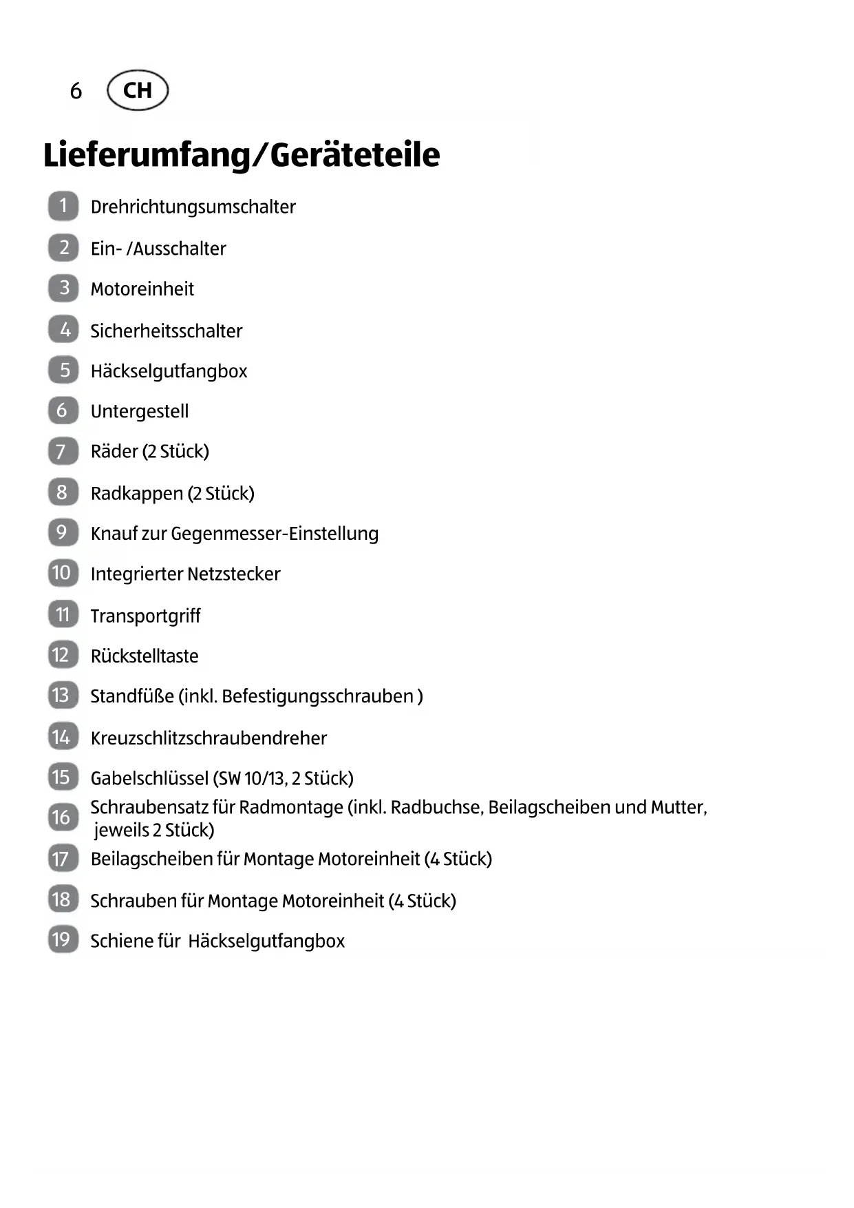 Lieferumfang/Geräteteile 6