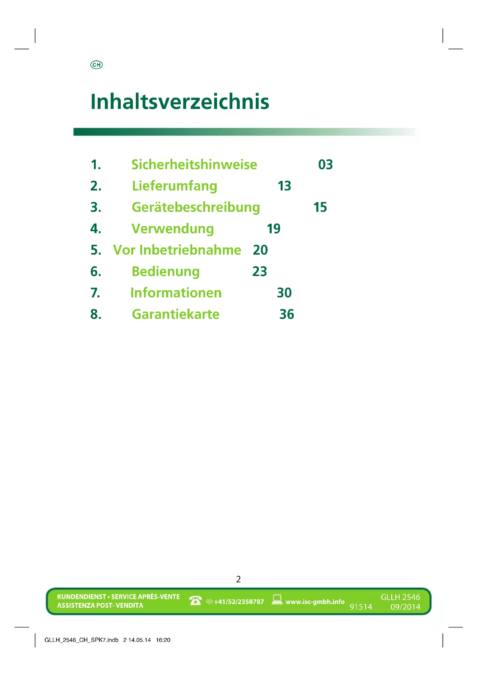 Der Hersteller garantiert die kostenfreie Behebung von Mängeln, die auf Material- oder Fabrikationsfehler zurückzuführen sind, nach Wahl des Herstellers durch Reparatur, Umtausch oder Geldrückgabe. Die Garantie erstreckt sich nicht auf Schäden, die durch einen Unfall, durch ein unvorhergesehenes Ereignis (z. B. Blitz, Wasser, Feuer etc.), unsachgemässe Benützung oder Transport, Missachtung der Sicherheits- und Wartungsvorschriften oder durch sonstige unsachgemässe Bearbeitung oder Veränderung verursacht wurden.