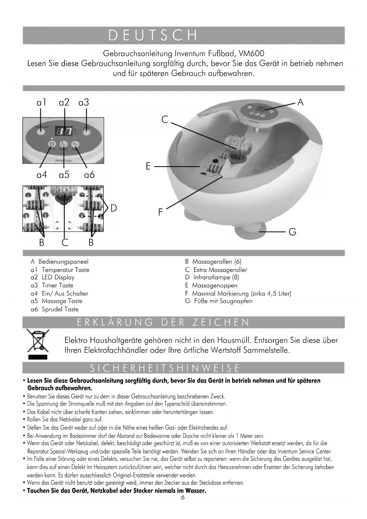 VM600 - Fußbad INVENTUM - Kostenlose Bedienungsanleitung