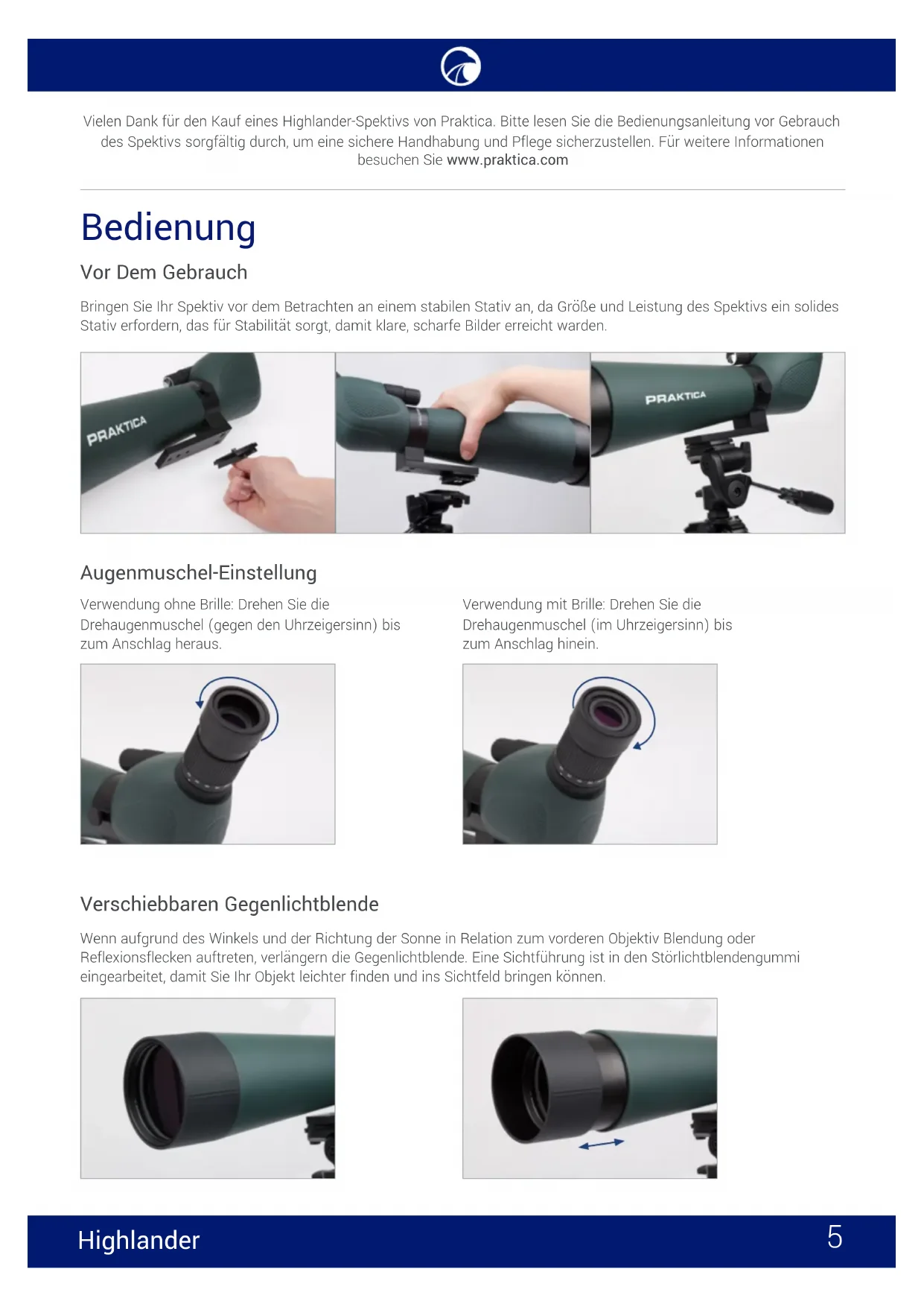 Finden Sie kostenlos die Bedienungsanleitung des Geräts Highlander 1545x60 Praktica als PDF.