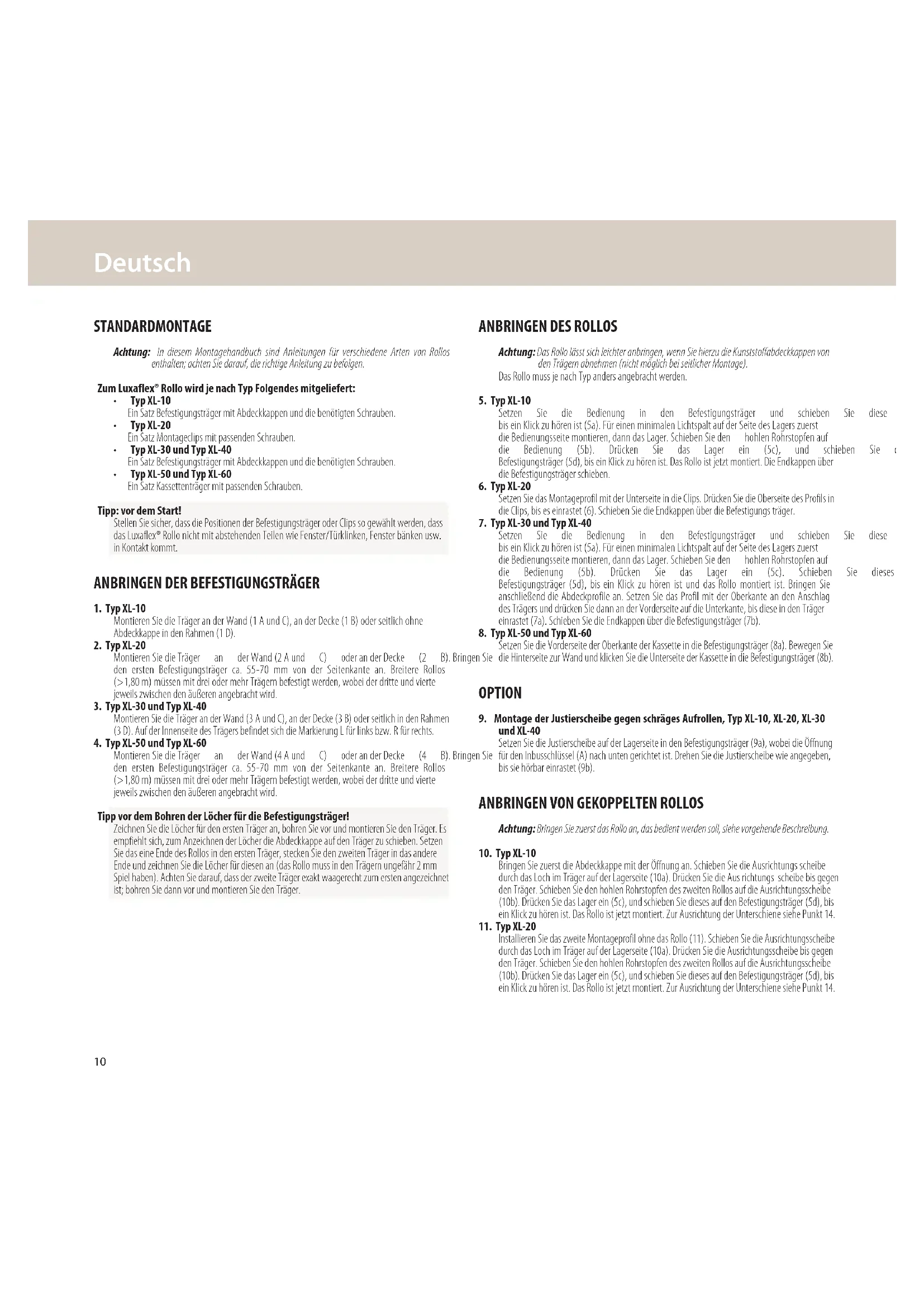 BEDIENUNGSANLEITUNG XL10 Luxaflex