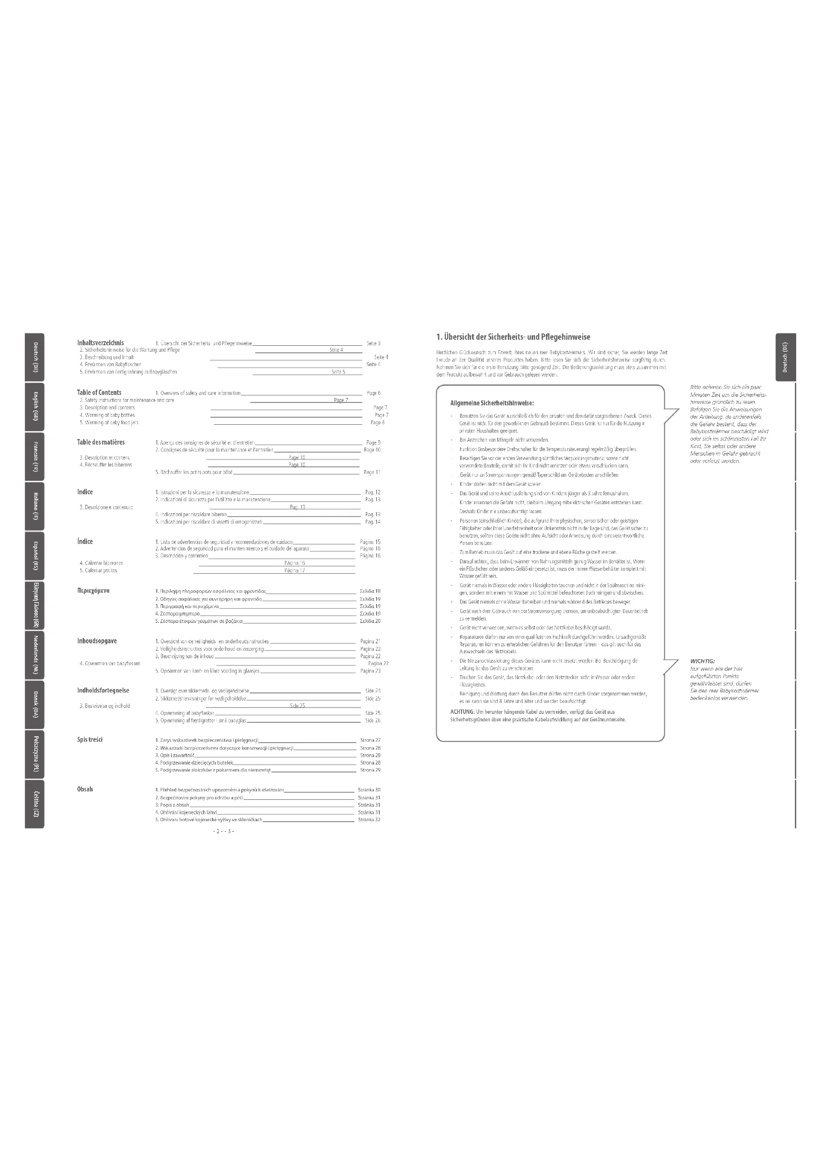 1. Übersicht der Sicherheits- und Pflegehinweise