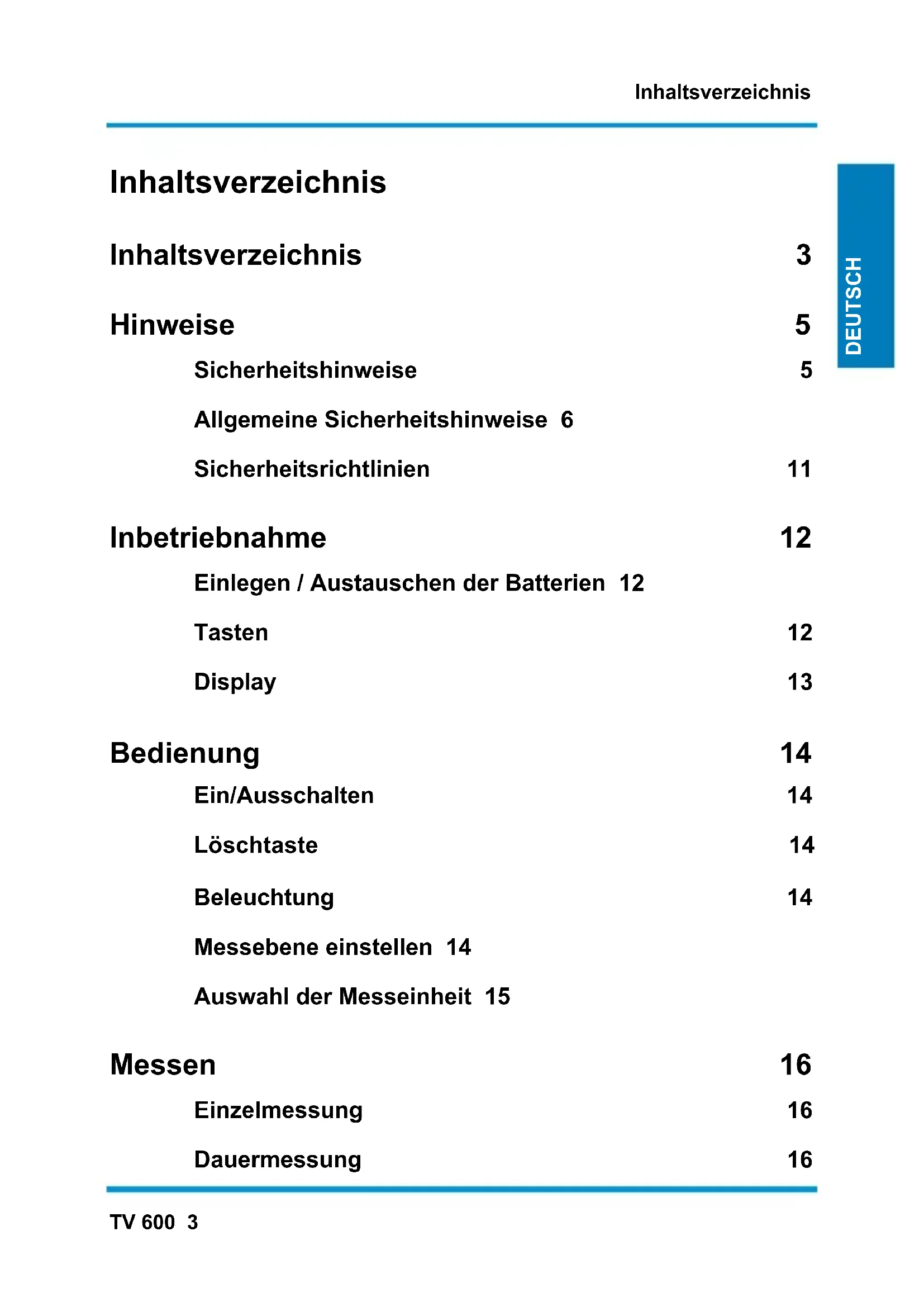 BEDIENUNGSANLEITUNG TV 600 Testboy