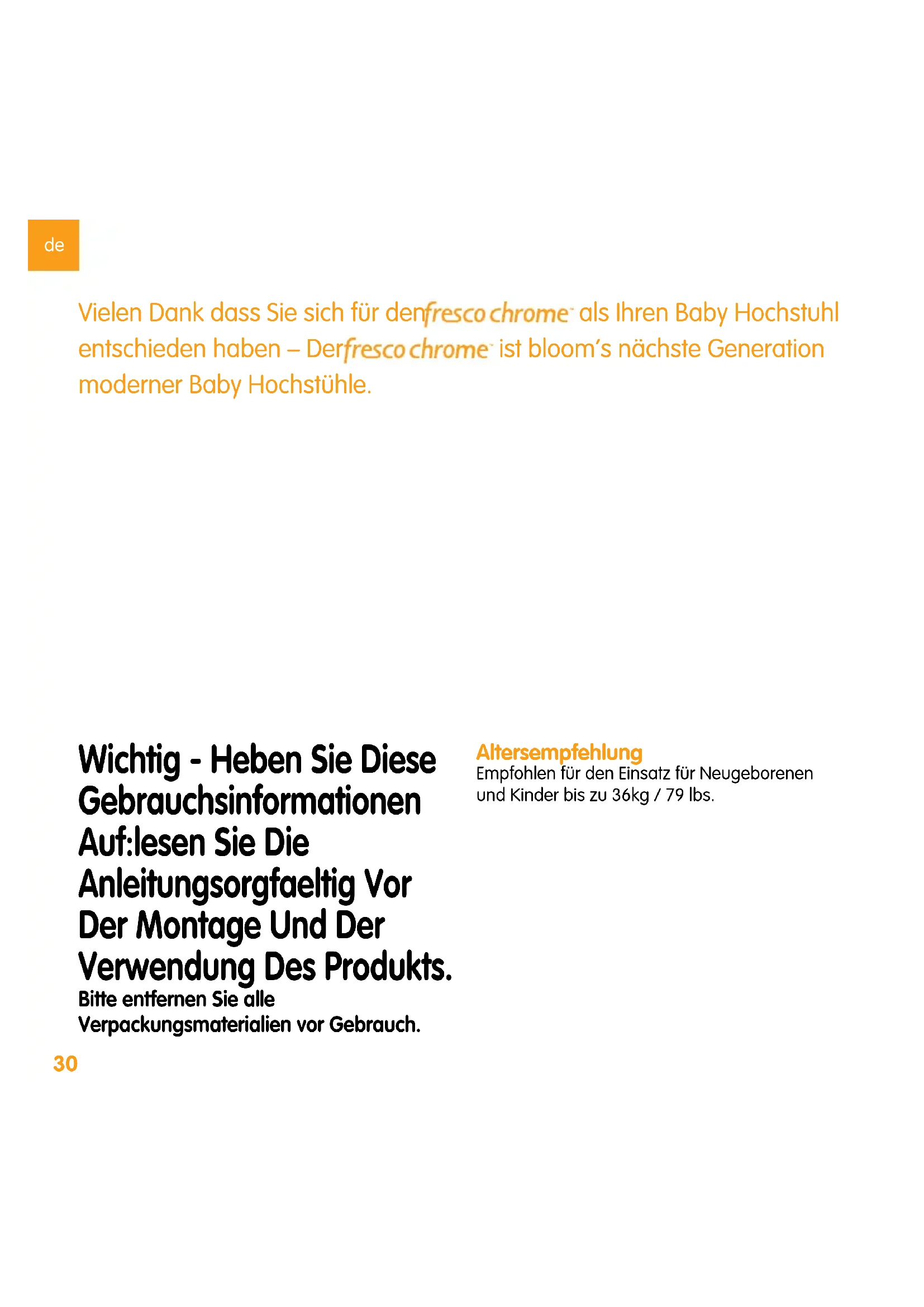 Vielen Dank dass Sie sich für den fresco chrome als ihren Baby Hochstuhl entschieden haben – Derfresco chrome ist bloom's{nachste Generation moderner Baby Hochstühle.