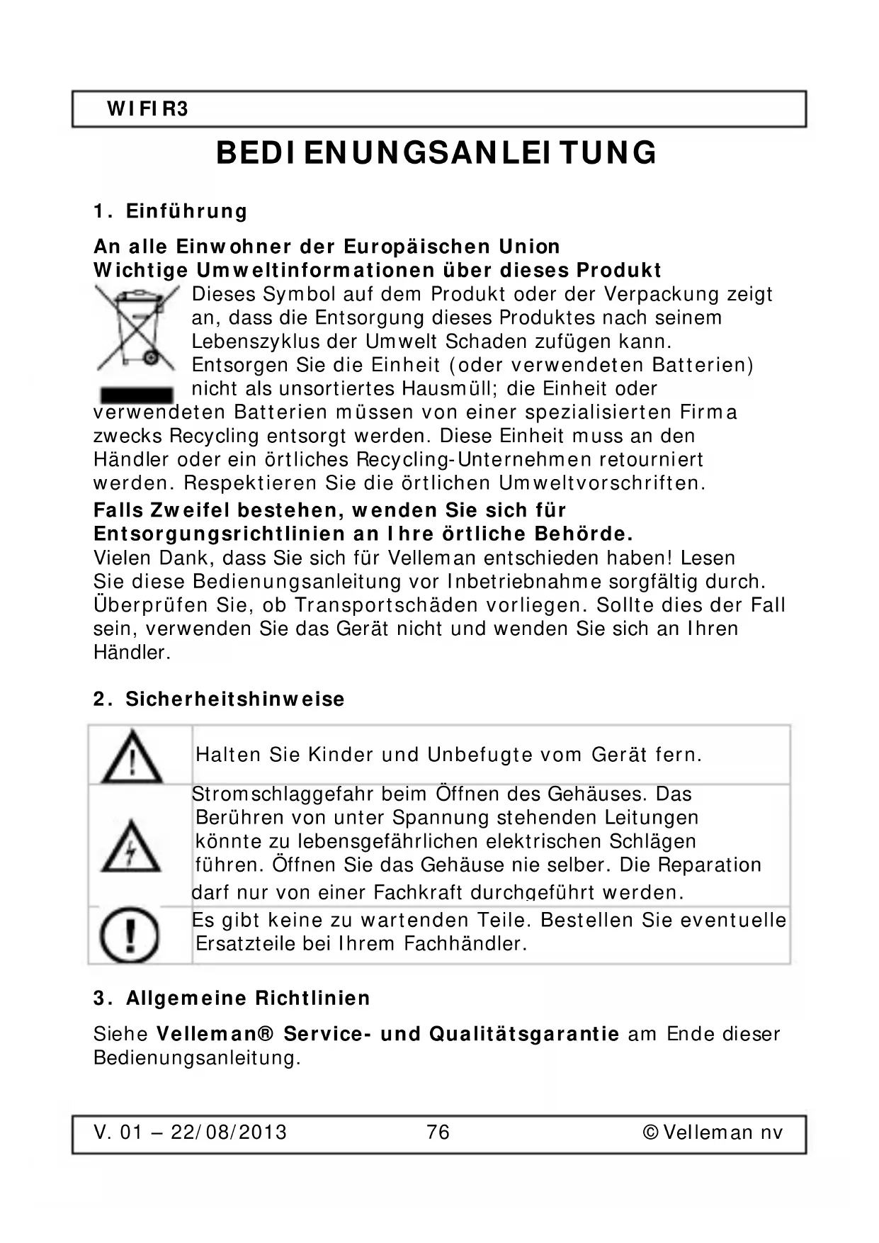 Siehe Velleman® Service- und Qualitätsgarantie am Ende dieser Bedienungsanleitung.WIFIR3