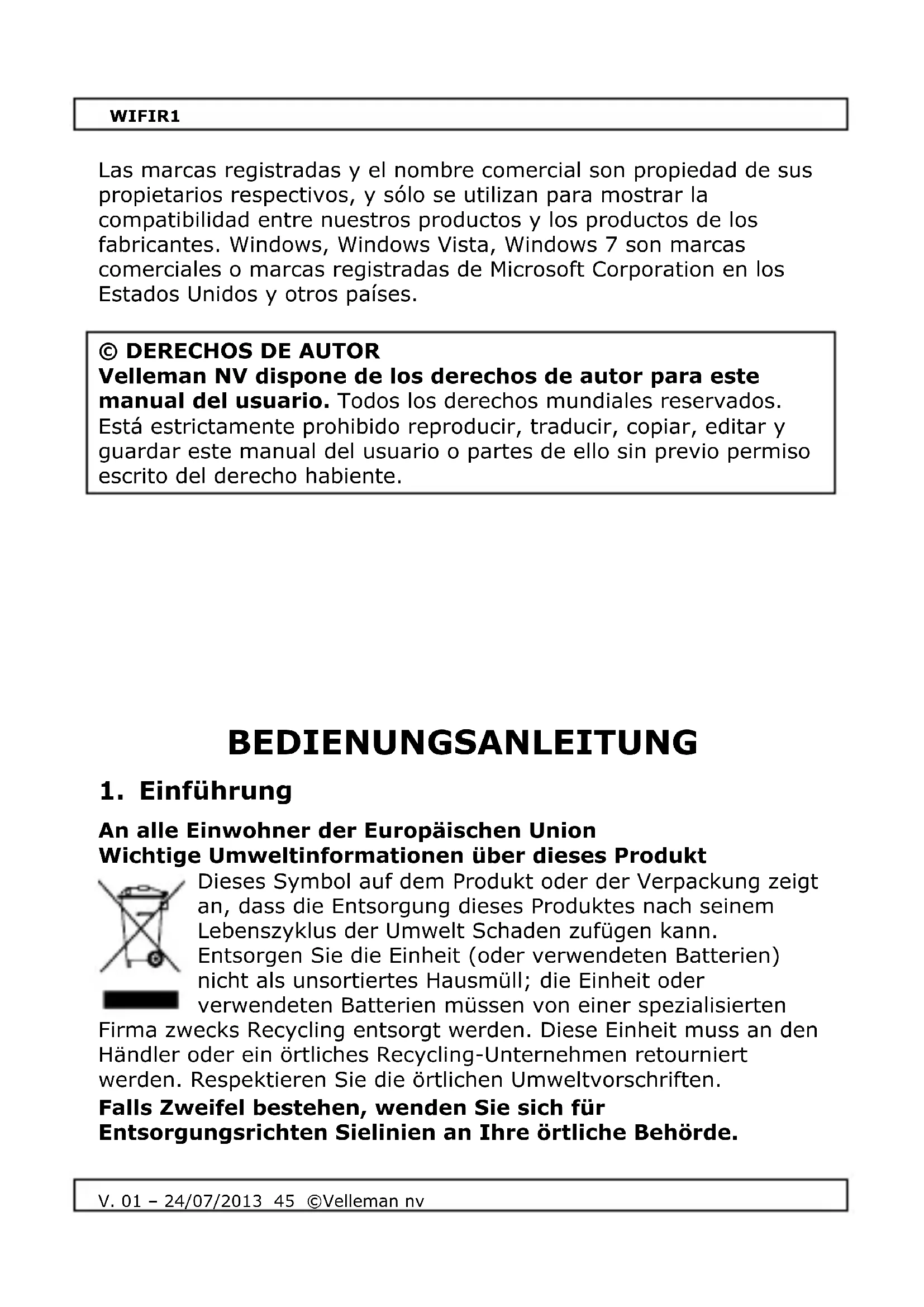 BEDIENUNGSANLEITUNG WIFIR1 VELLEMAN
