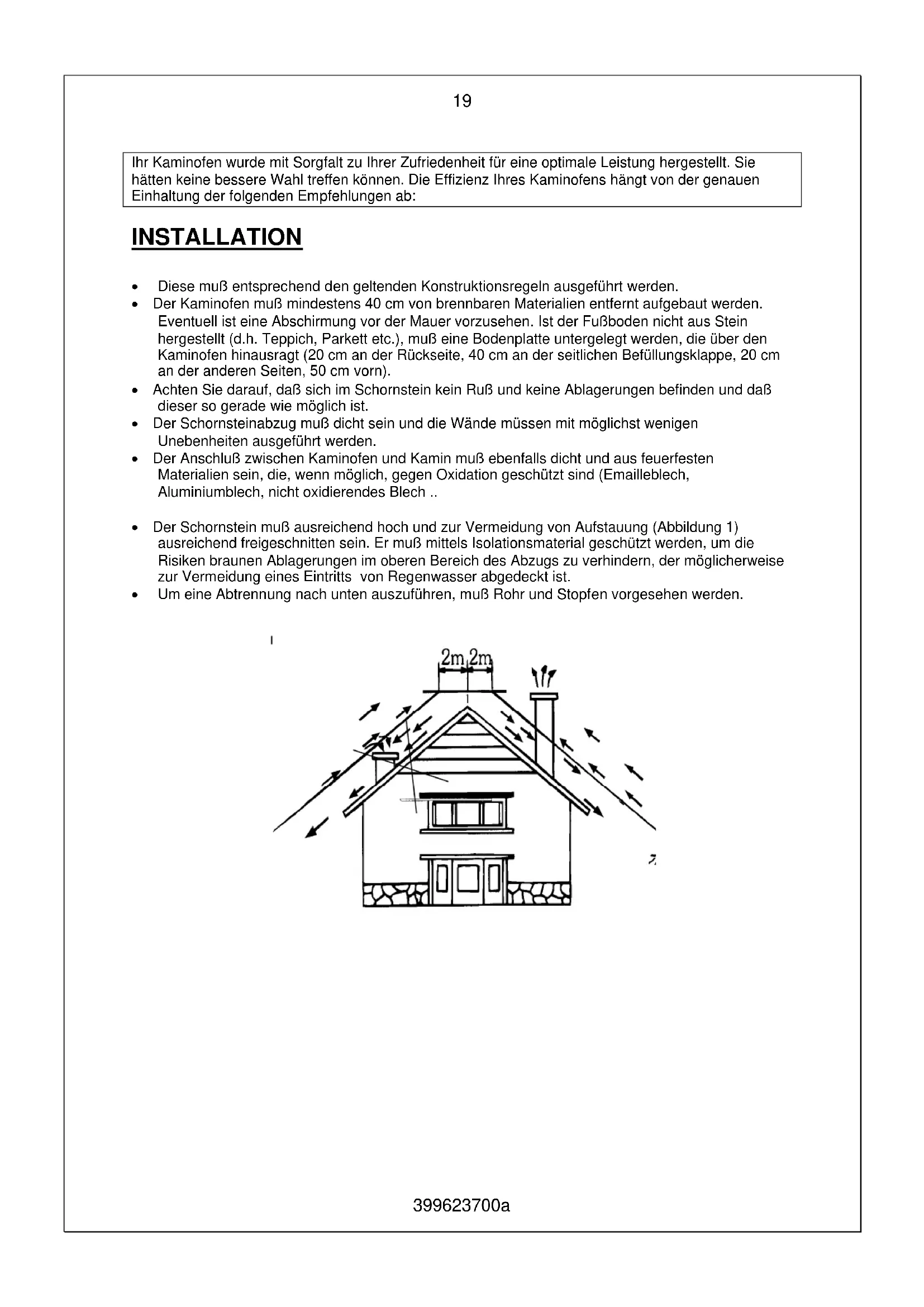 - Der Schornsteinabzug muß dicht sein und die Wände müssen mit möglichst wichtigen Unebenheiten ausgeführrt werden.