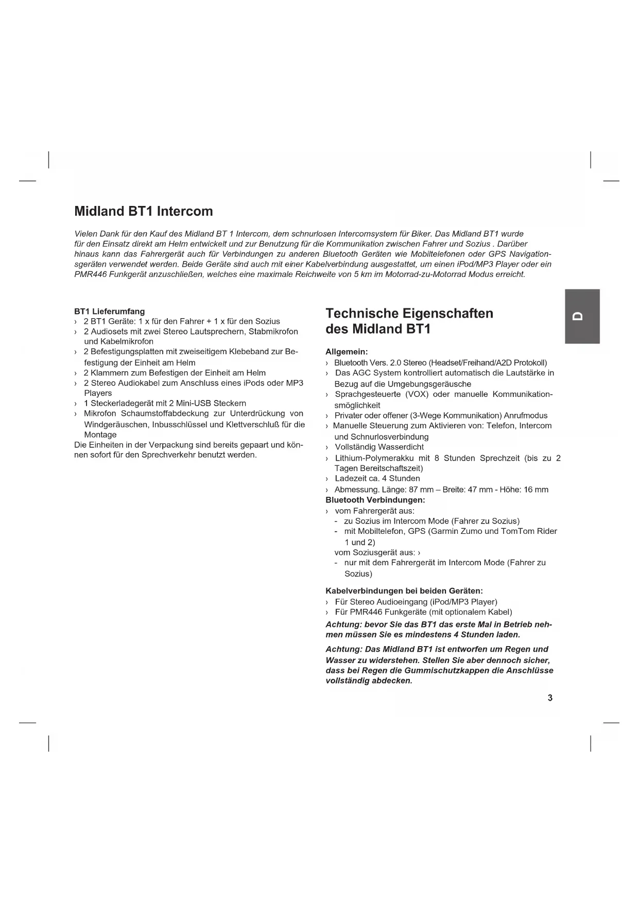 BEDIENUNGSANLEITUNG BT1 MIDLAND