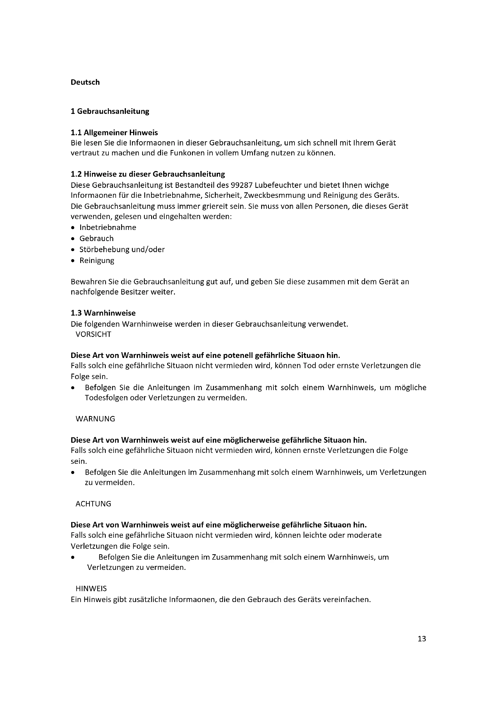 1.1 Allgemeiner Hinweis