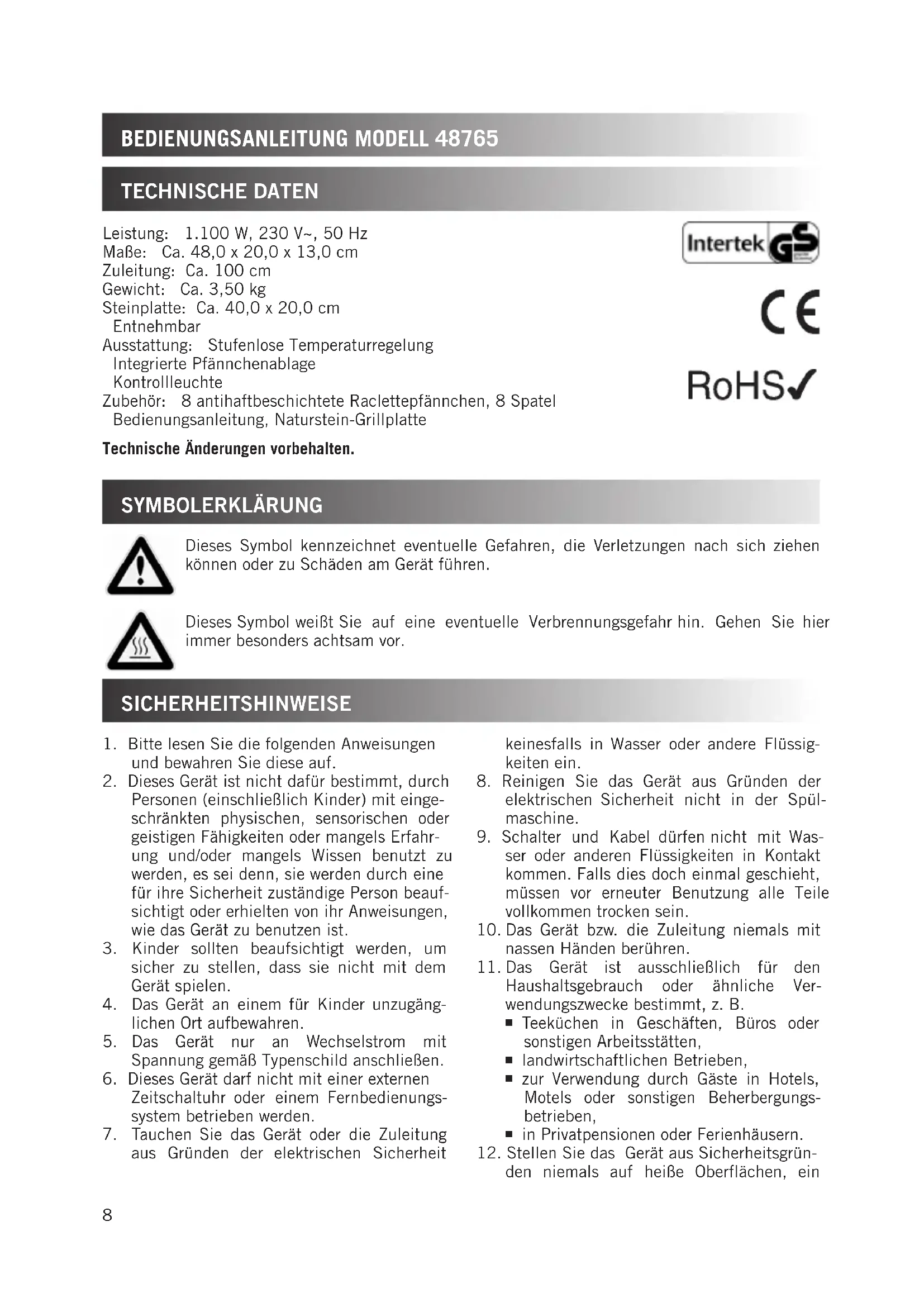 BEDIENUNGSANLEITUNG 48765 UNOLD