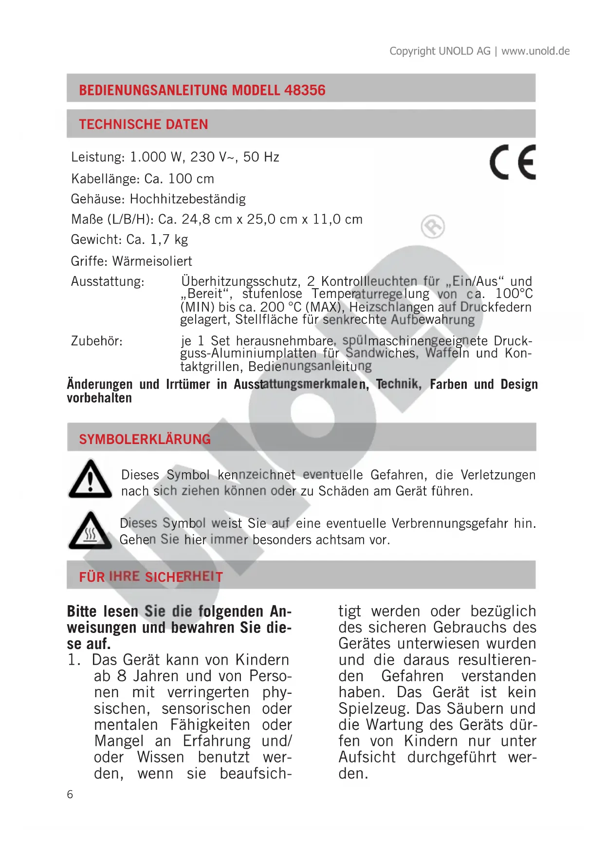 Finden Sie kostenlos die Bedienungsanleitung des Geräts 48356 UNOLD als PDF.