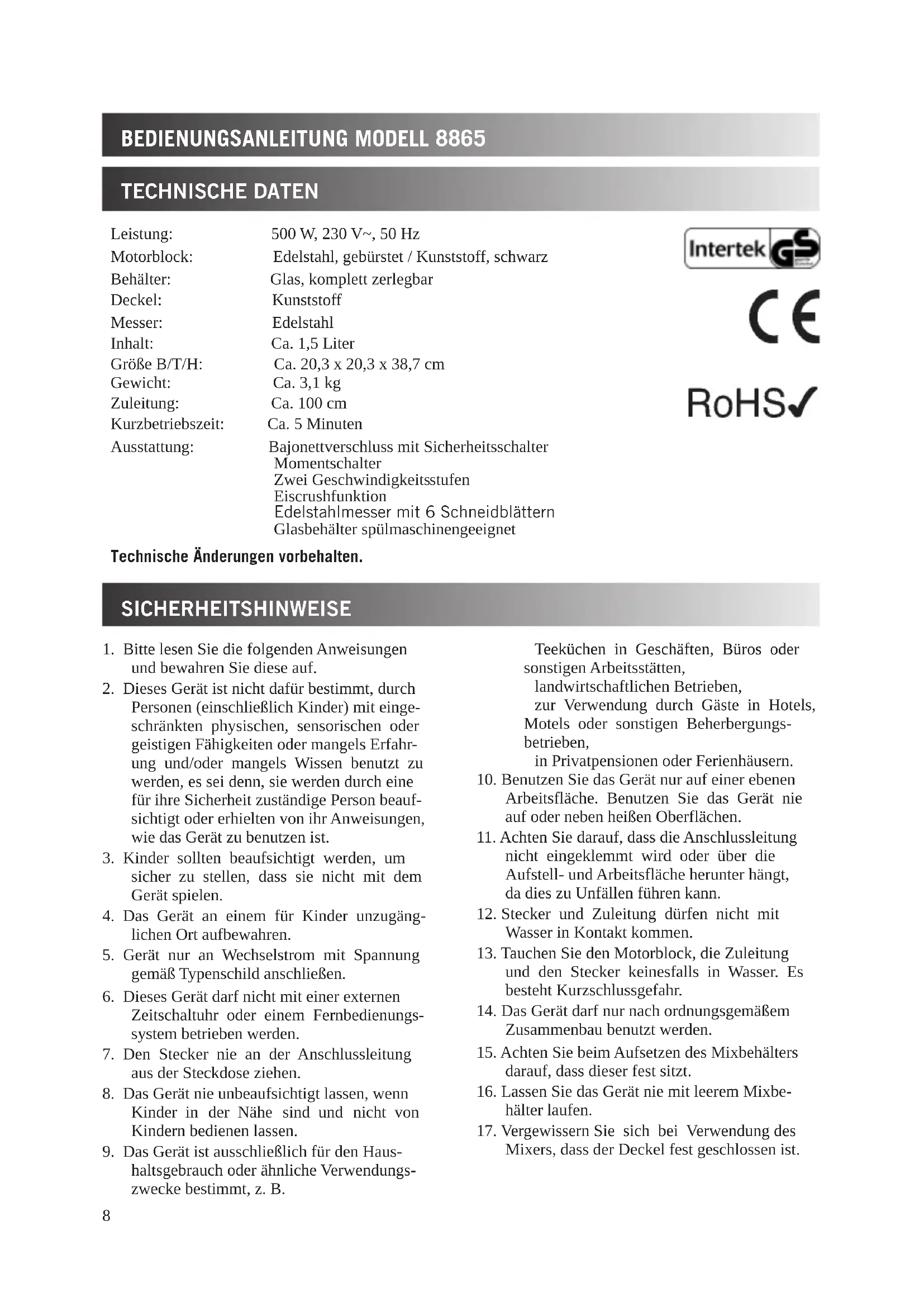BEDIENUNGSANLEITUNG 8865 UNOLD