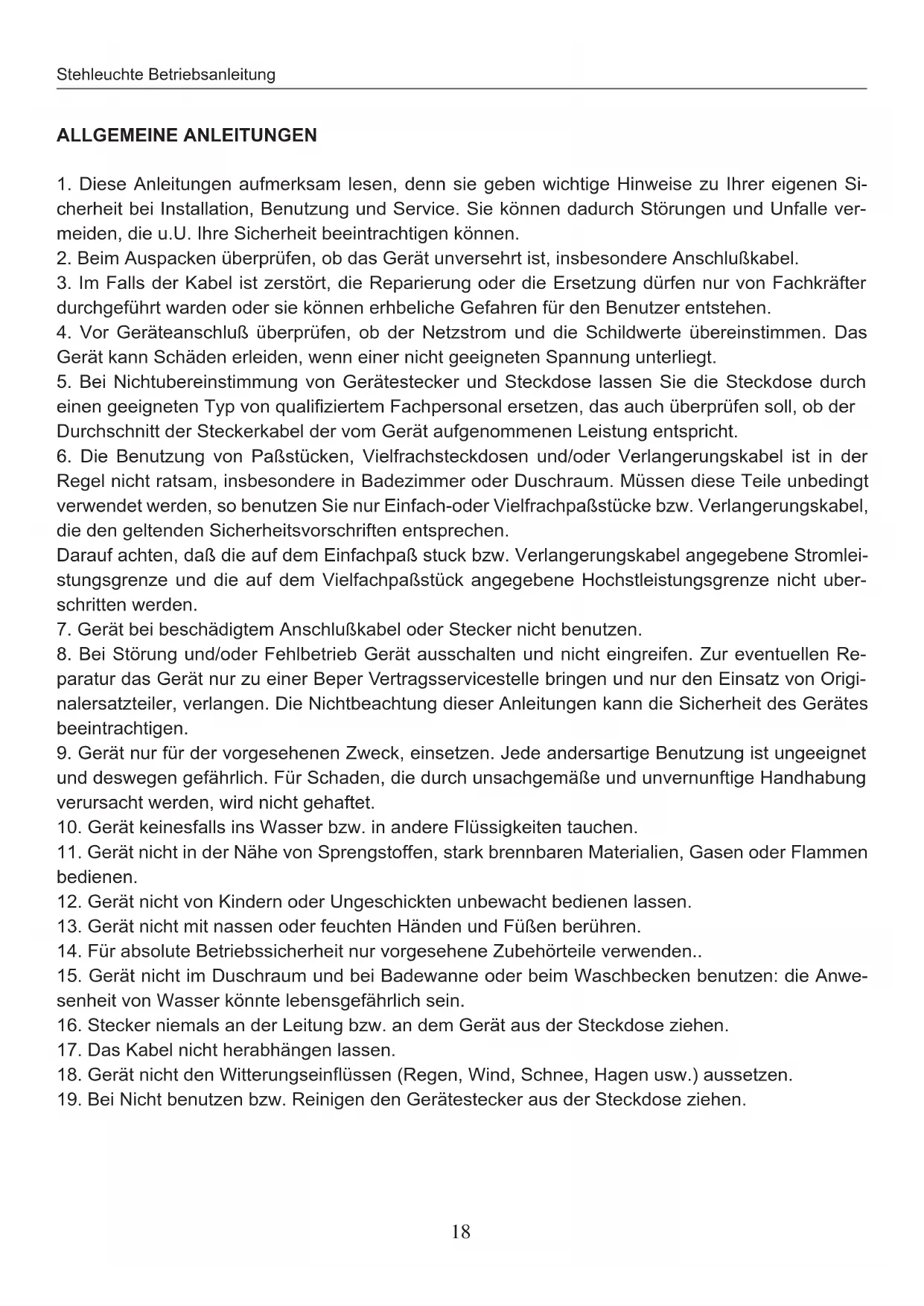 - STEHLEUCHTE - BETRIEBSANLEITUNG