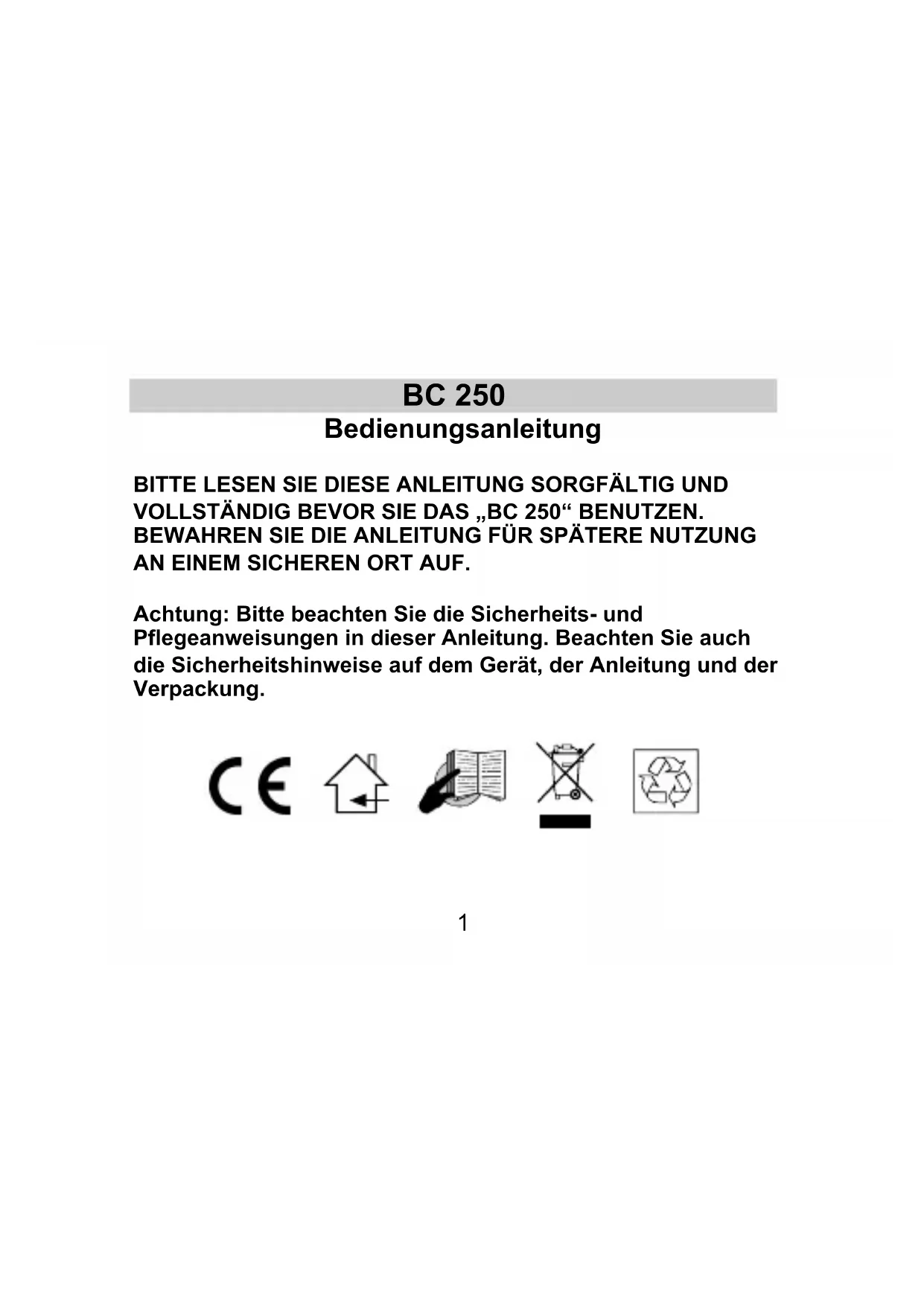 BEDIENUNGSANLEITUNG BC 250 Techno Line