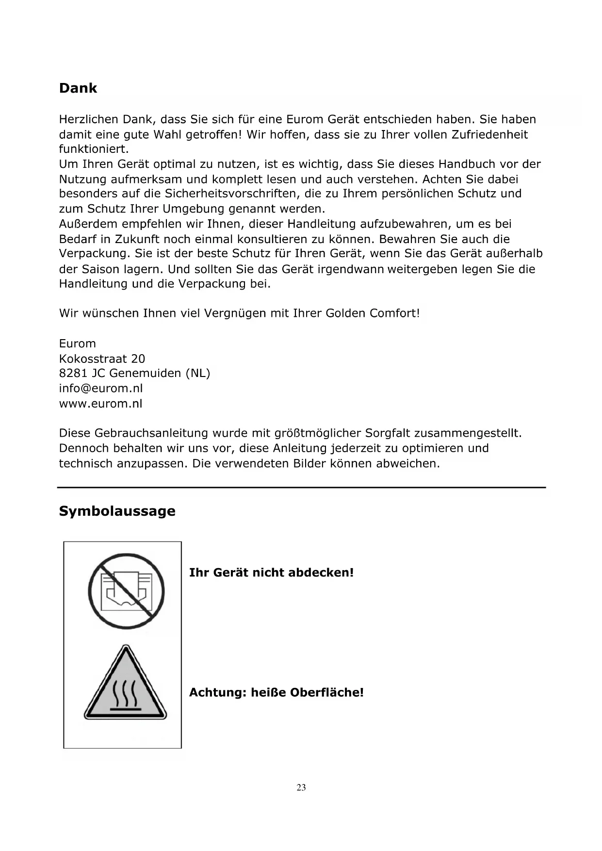 Herzlichen Dank, dass Sie sich für eine Eurom Gerät entschieden haben. Sie haben damit eine gute Wahl getroffen! Wir hoffen, dass sie zu Ihrer vollen Zufriedenheit Funktioniert.