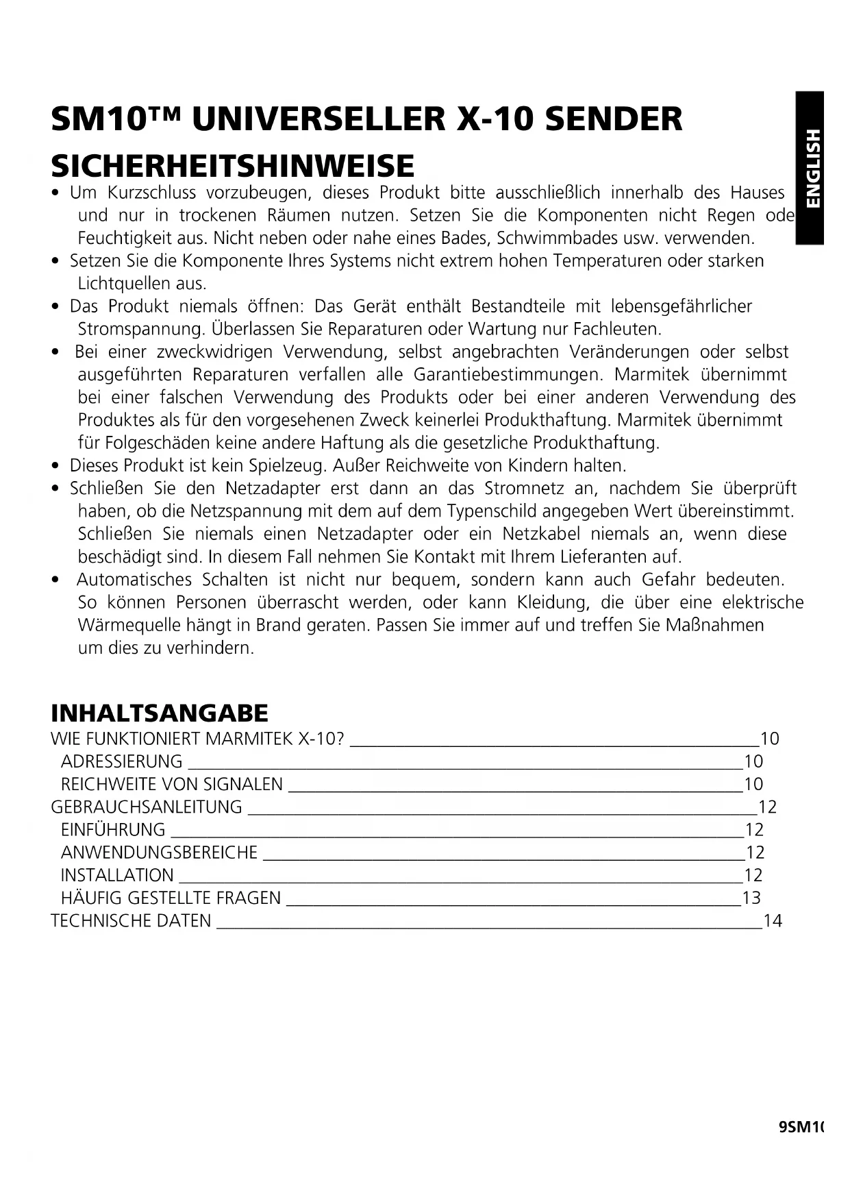 SM10™ UNIVERSELLER X-10 SENDER SICHERHEITSHINWEISE