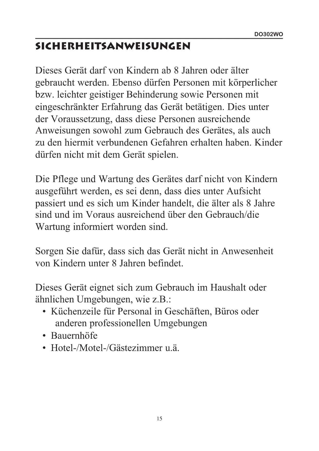 BEDIENUNGSANLEITUNG DO302WO DOMO