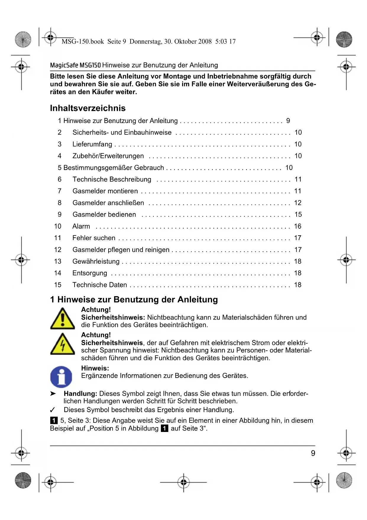 MSG-150.book Seite 8 Donnerstag, 30. Oktober 2008 5:03 17MagicSafe MSG150 Hinweise zur Benutzung der Anleitung