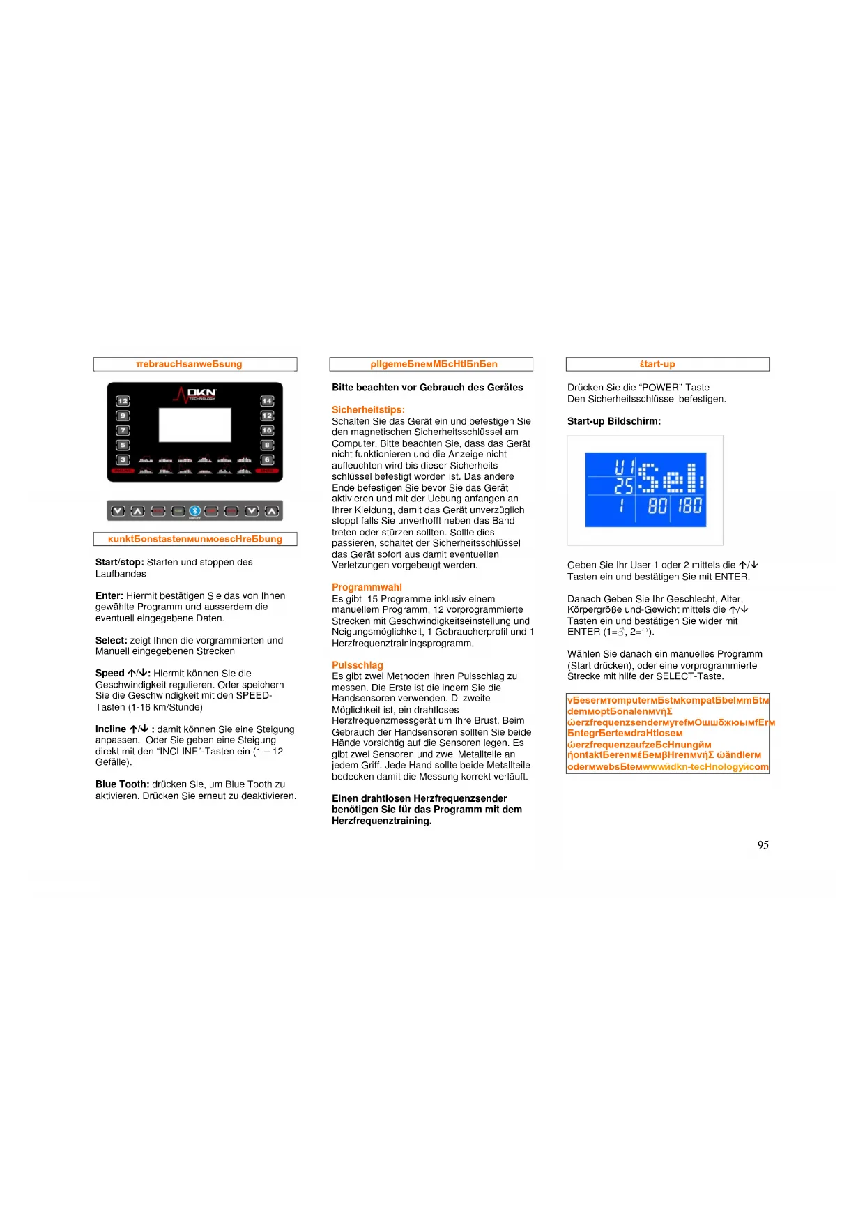 Bevor Sie mit dem Training beginnen, lesen Sie bitte sorgfältig diese Anweisungen. Bewahren Sie die Anweisungen für den Fall einer Reparatur oder einer Ersatzteillieferung zu Ihrer Information auf.