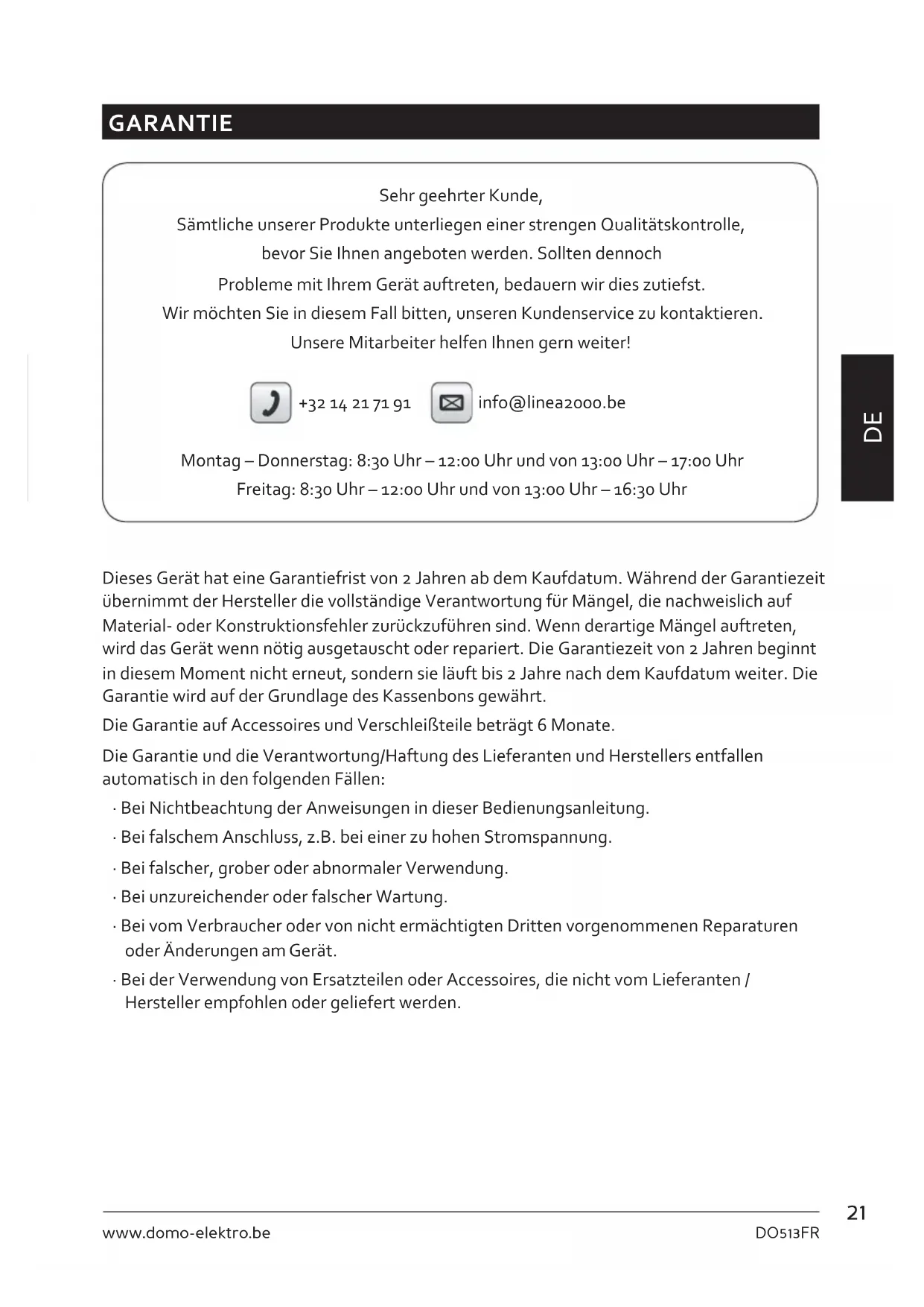 BEDIENUNGSANLEITUNG DO513FR DOMO