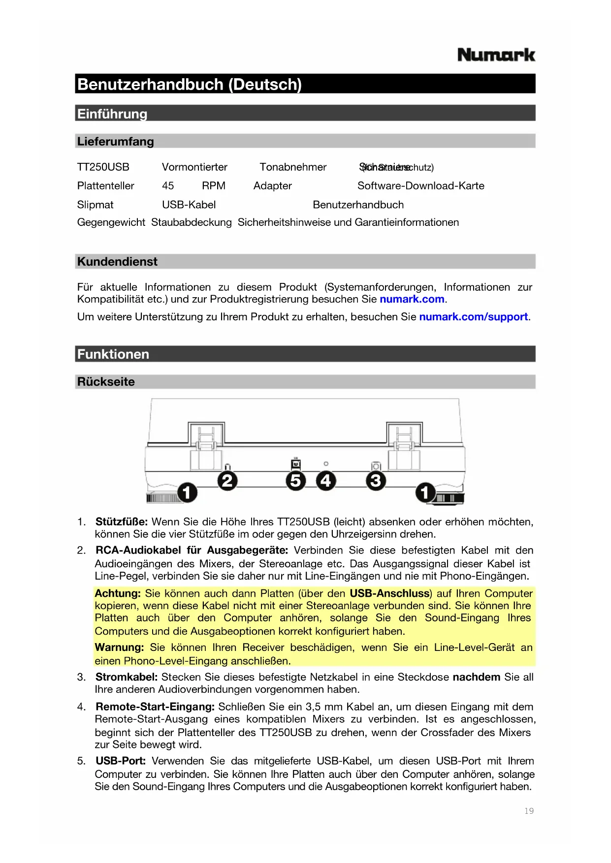 BEDIENUNGSANLEITUNG TT250USB NUMARK