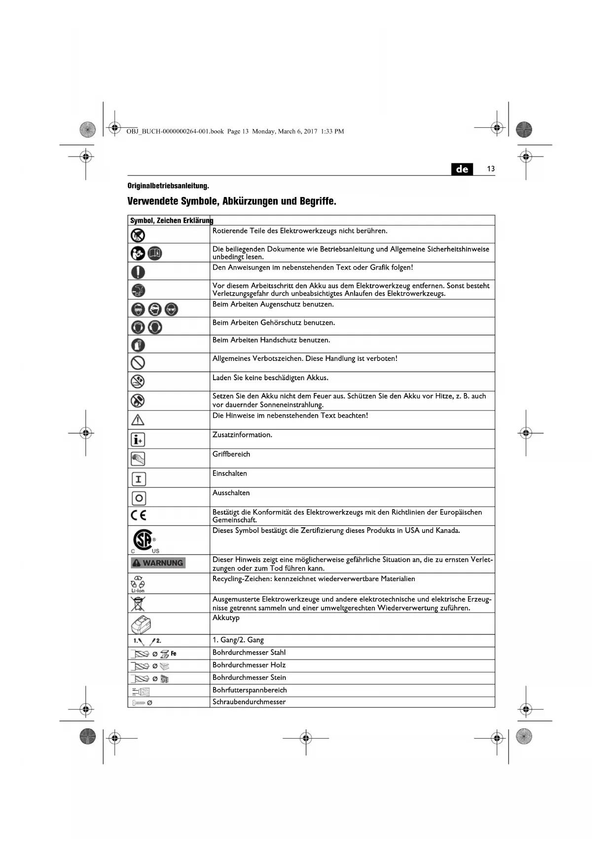 | Beim Arbeiten Gehörschutz benutzen. | |