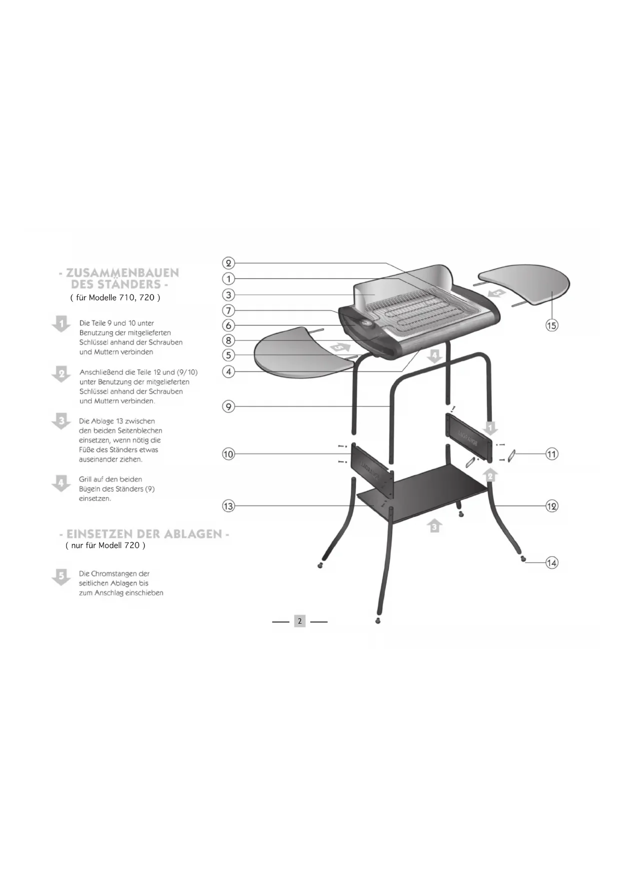 - Die Garzeiten richten sich nach den Lebensmitteln und Ihrem persönlichen Geschmack. 5Zusammenbauen des Ständers (gemäß Vorlage)