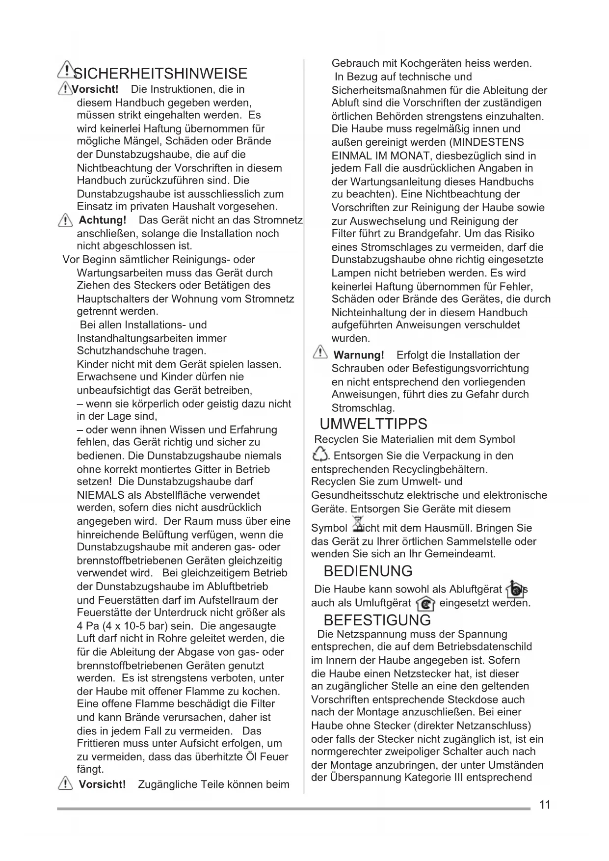 Dunstabzugshaube Benutzerinformation 11