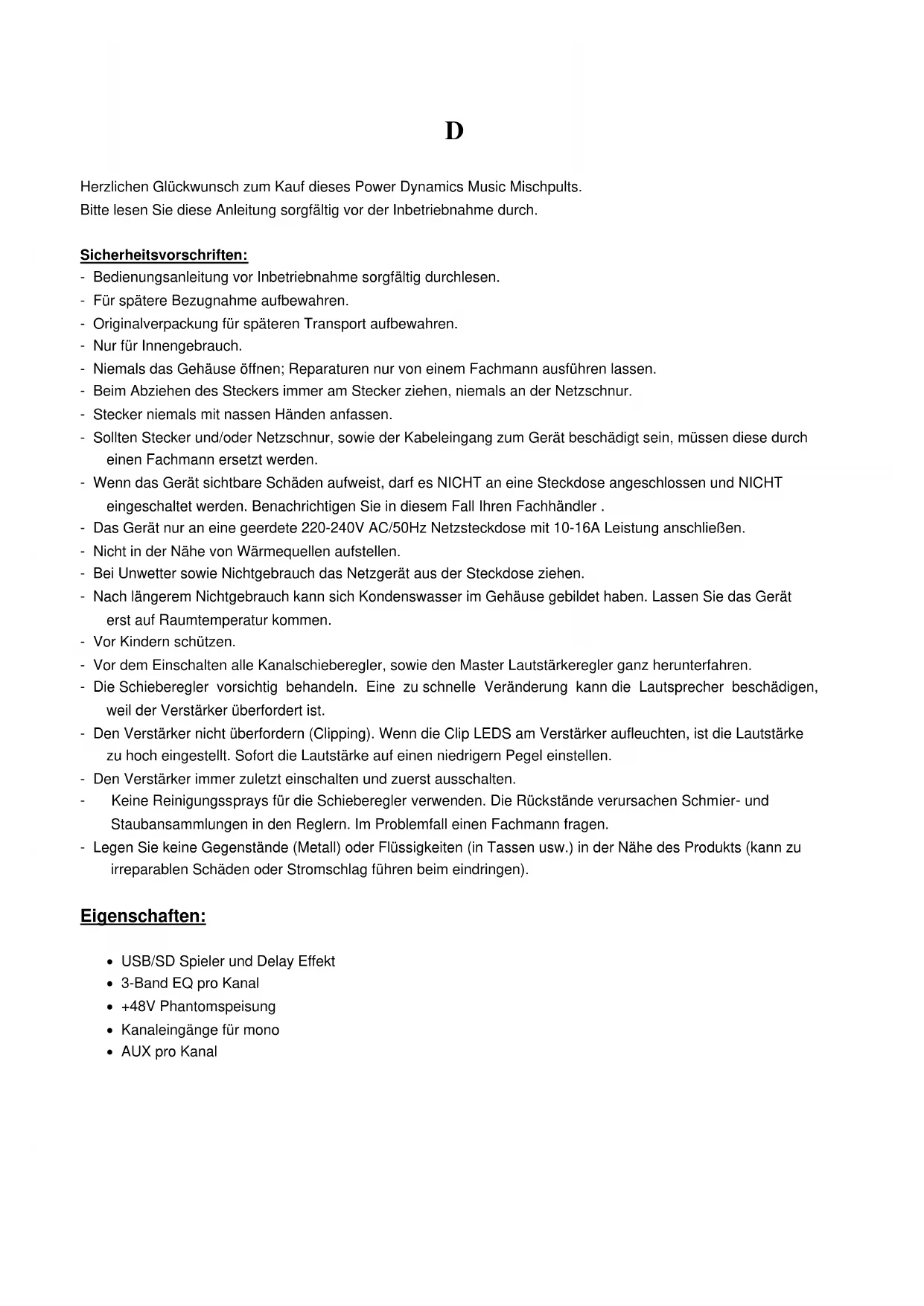 Herzlichen Glückwunsch zum Kauf theses Power Dynamics Music Mischpults.