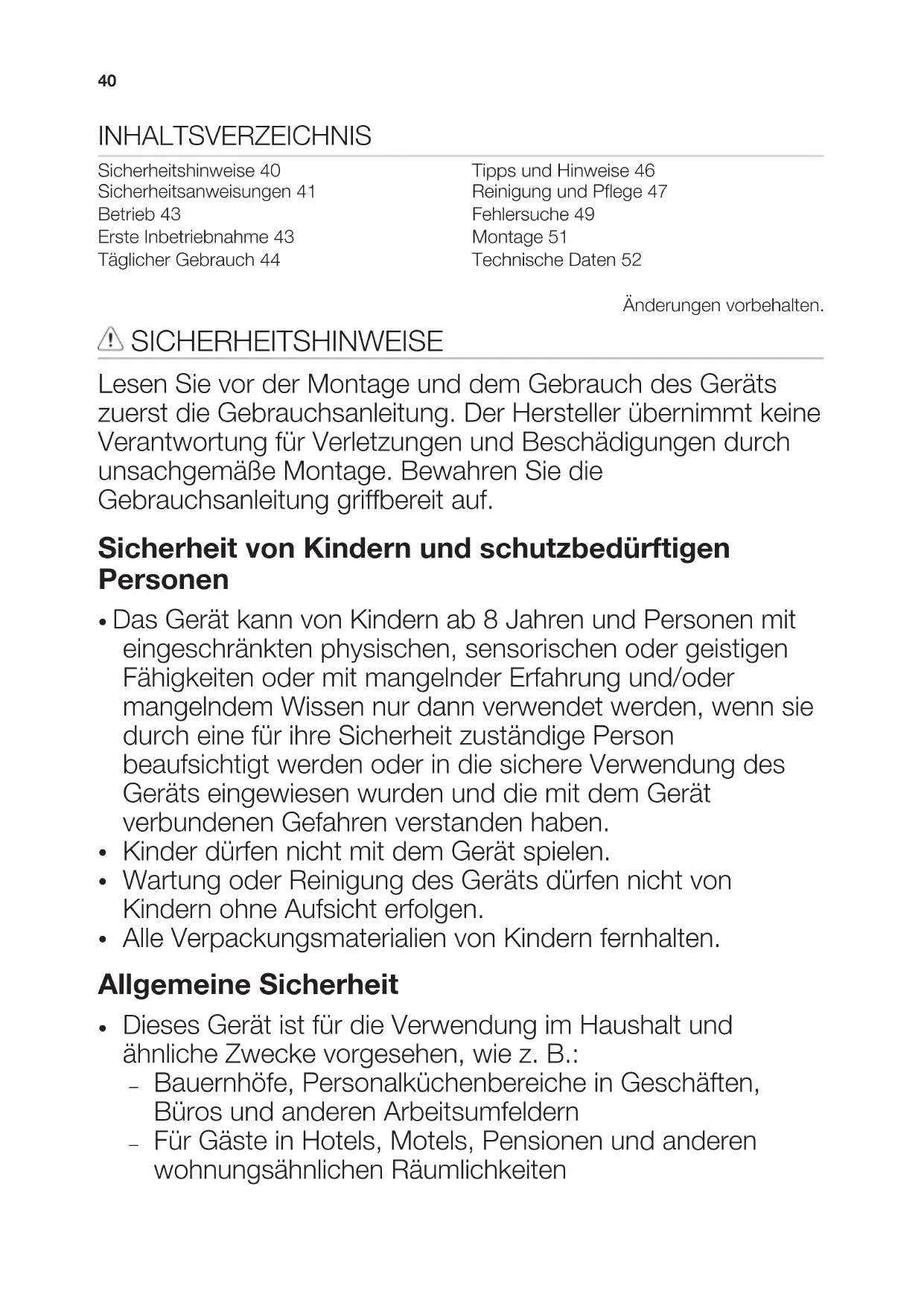 - Das Gerät kann von Kindern ab 8 Jahren und Personen mit eingeschränkten physischen, sensorischen oder geistigen Fähigkeiten oder mit mangelnder Erfahrung und/oder mangelndem Wissen nur dann verwendet werden, wenn sie durch eine für ihre Sicherheit zuständige Person beaufsichtigt werden oder in die sichere Verwendung des Geräts eingewiesen wurden und die mit dem Gerät verbundenen Gefahren verstanden haben.