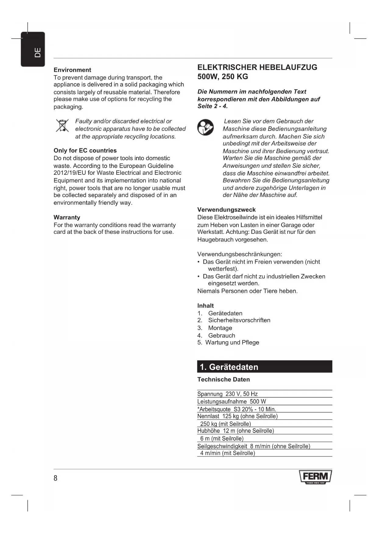 LHM1011 - Elektrische Winde Ferm - Kostenlose Bedienungsanleitung